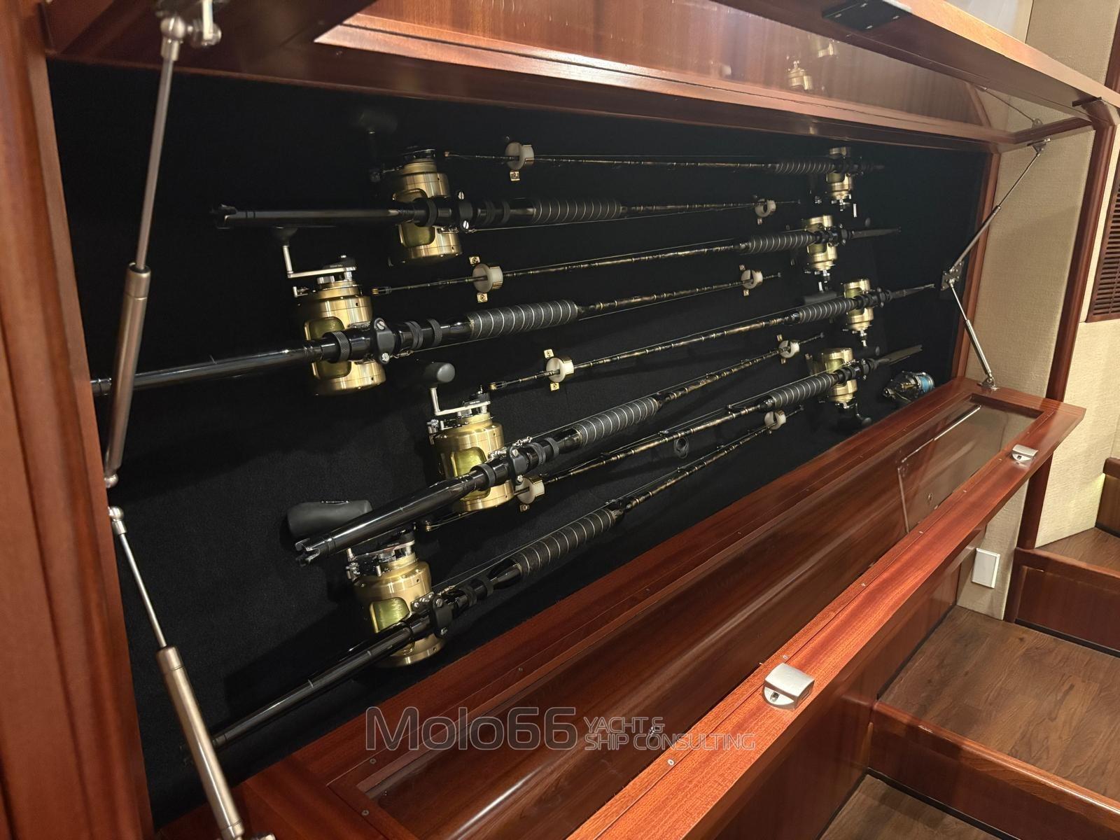 Outriggers (Rupp's - Idraulic openig), Portacanne, Sedia da combattimento, Trolling Valve, Tuna tower, Vasca del vivo, Vasca pescato.