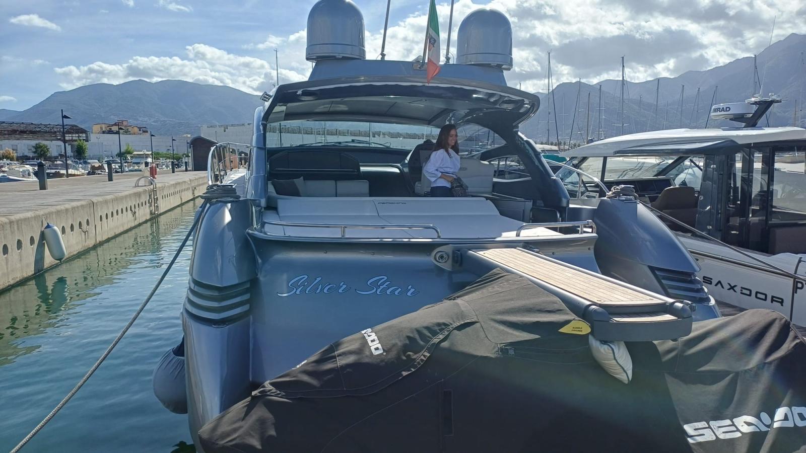 Allarme motore, Allarme sentina, Autoclave, Colorazione speciale, Flap idraulici, Impianto antincendio, Indicatori Flaps, Lavandino nel Pozzetto, Luci di cortesia, Luci subacquee, Passerella, Pozzetto Teak, Presa 220V banchina, Tavolo pozzetto, Tromba, Winch tonneggio di poppa.