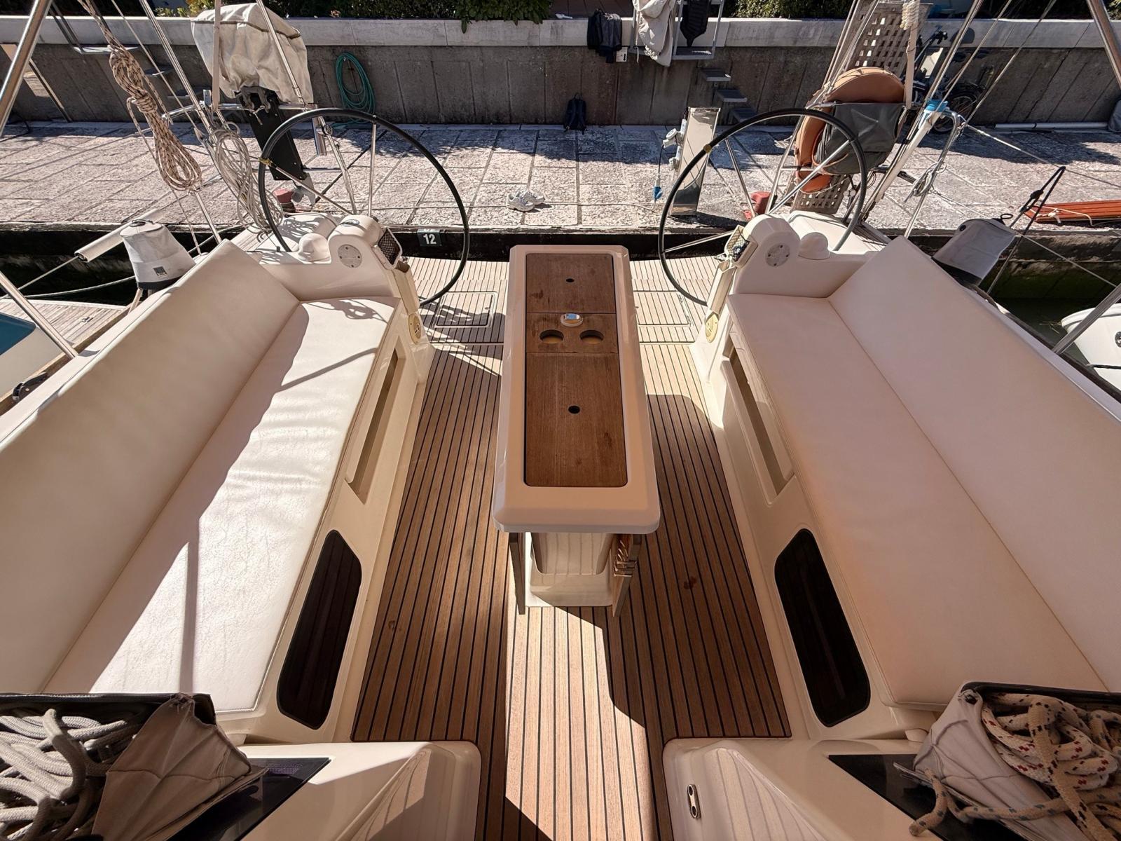 Autoclave, Camminamenti laterali in teak, 2 Caricabatterie, Doccia esterna, Doppia timoneria, Parabordi, Passerella, Piattaforma, Pompa di sentina manuale, Porta ingresso, Pozzetto Teak, Presa 220V banchina, Salpa Ancore Elettrico, Sartiame spiroidale, Tavolo pozzetto, Tavolo Salone Abbattibile, 3 Winch.