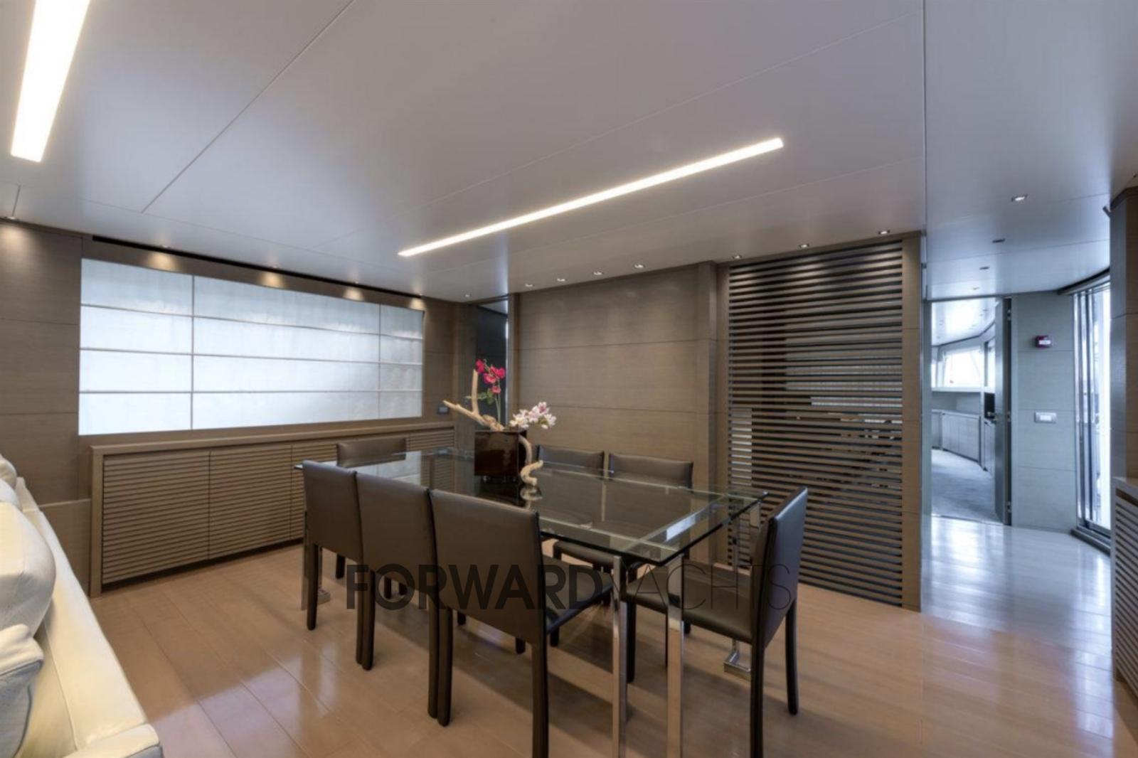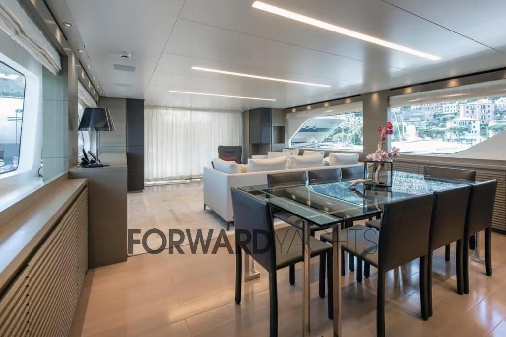 Le ampie finestrature del ponte principale garantiscono luminosità e un contatto costante con il mare, il salone principale, ampio e luminoso, ospita una zona living con divani e una zona pranzo separata.