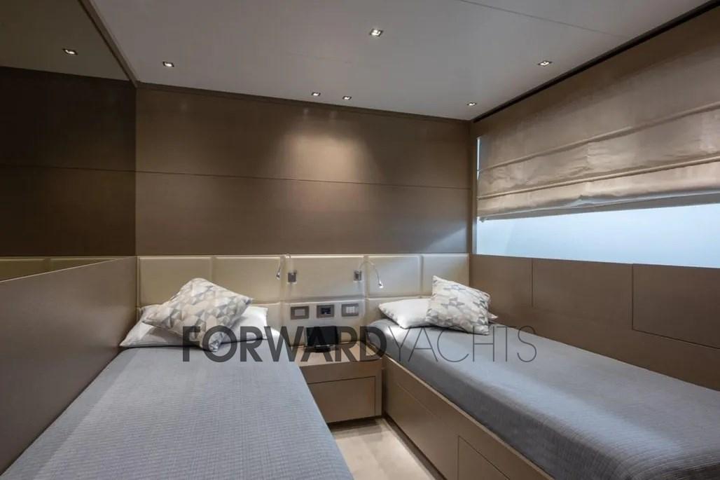 Il ponte inferiore ospita una cabina VIP e due cabine ospiti doppie, tutte con bagno en suite.