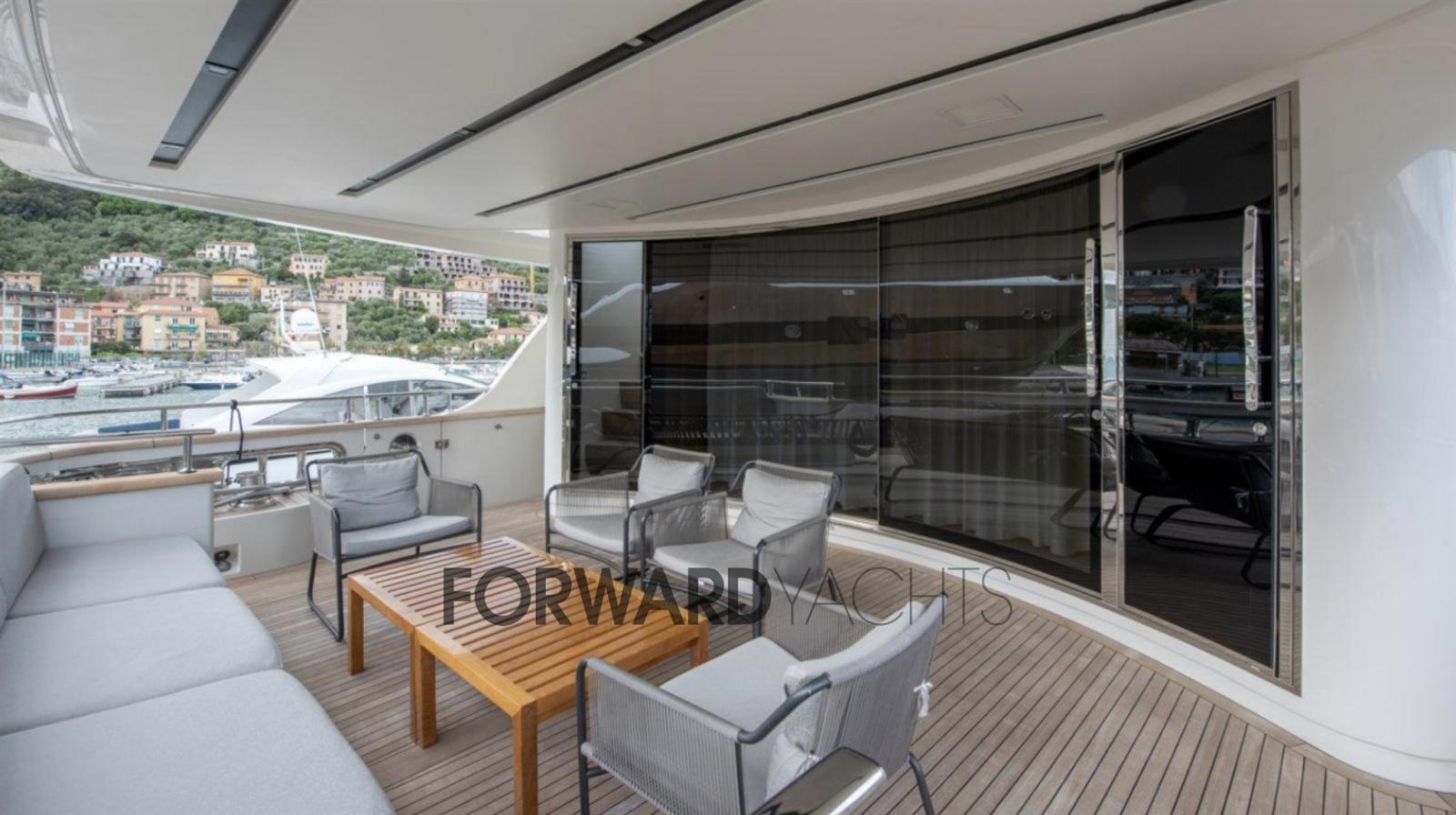 2 Ancora, Camminamenti laterali in teak, 2 Caricabatterie, Elica di poppa - stern thruster (idraulica), Elica di prua - bow thruster (elettrica), Flap idraulici, Garage per tender, Hard top, Luci subacquee, Passerella (idraulica), Ponte in teak, Pozzetto Teak, Presa acqua banchina, Salpa Ancore Elettrico, Stabilizzatori (a pinne), Tavolo pozzetto.