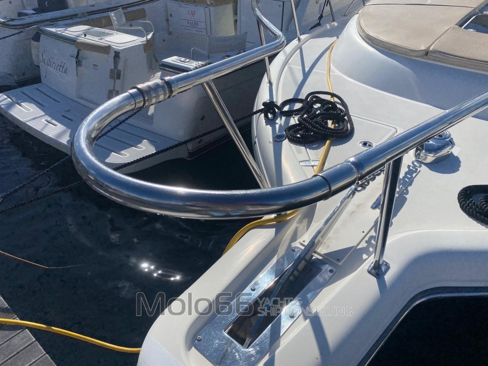 Allarme fumo/gas (monossido di carbonio), Allarme motore, Allarme sentina, Autoclave, Batterie (n° 7), Cavo corrente di banchina, Doccia esterna (calda/fredda), Elica di prua - bow thruster (5.4 hp), Fari fissi a poppa, Faro orientabile, Flap elettrici (Lenco), Hard top, Impianto antincendio, Indicatori Flaps, Lavaggio catena, Lavandino nel Pozzetto, Luci di cortesia, Pannelli Solari, Parabordi, Pompa di sentina automatica (n° 3 - 2 da 1500 lth e1 da 1100 lth), Pompa Lavaggio Ponte, Presa 220V banchina, Raddrizzatore, Salpa Ancore Elettrico, Scaletta da bagno, Tavolo pozzetto, Tromba.
