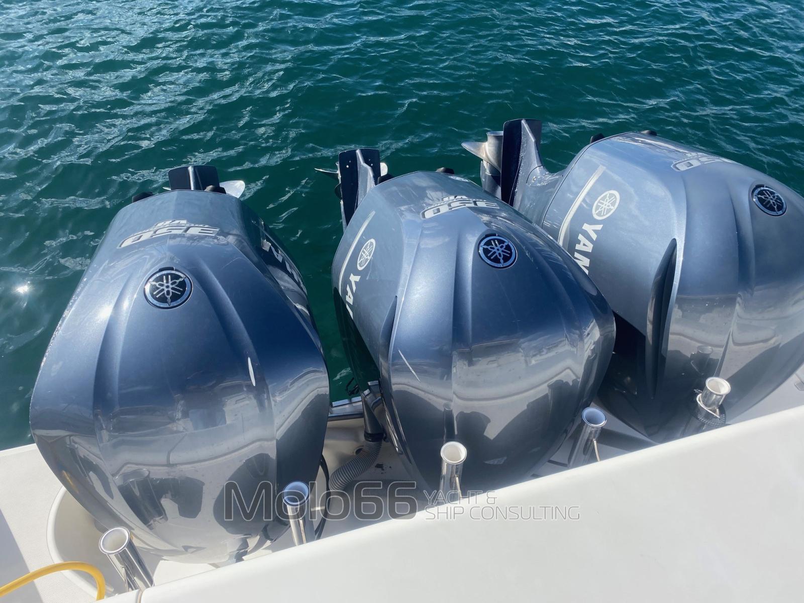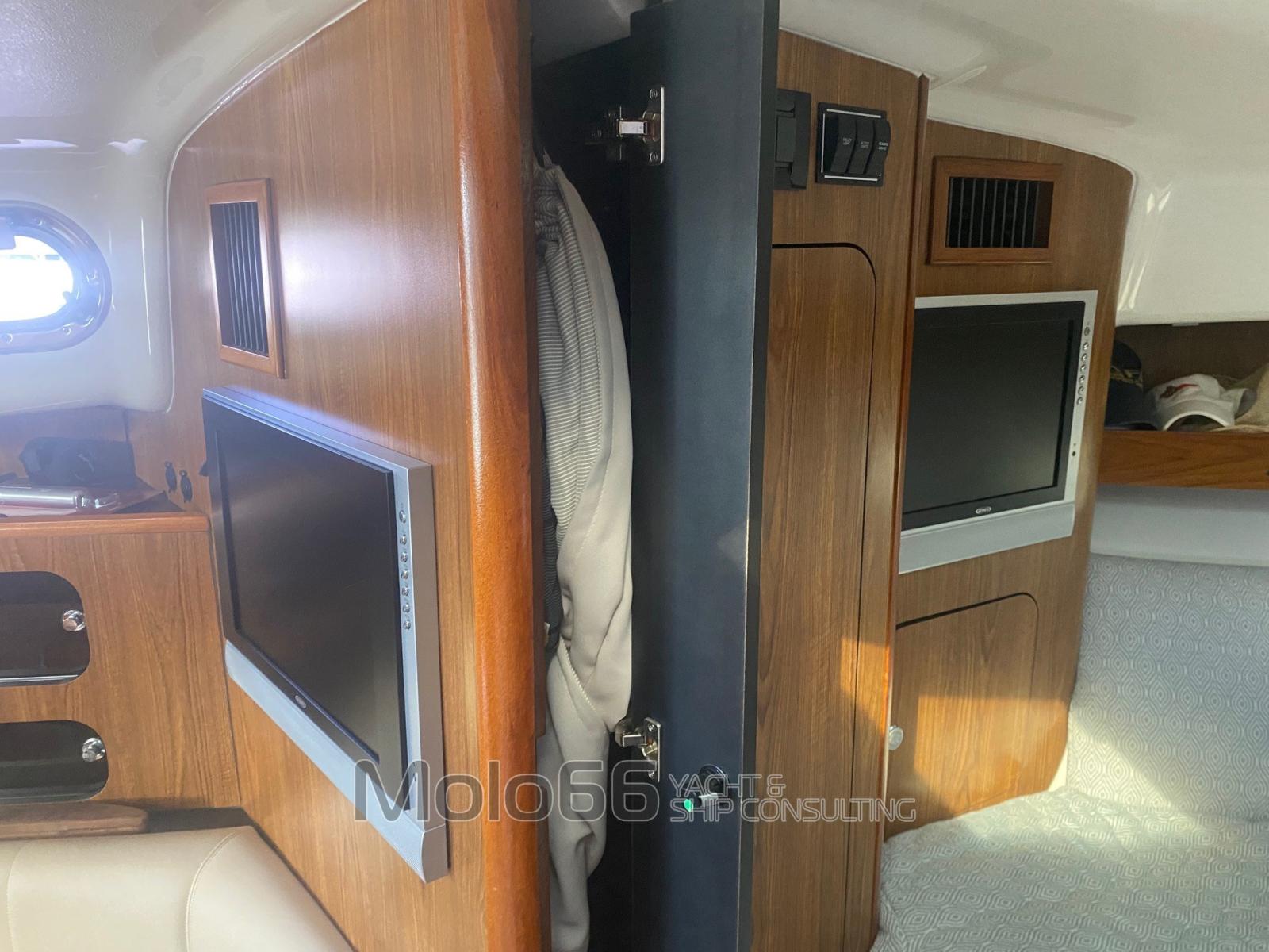 Angolo barra, Comando motori elettronico, 2 Display (Garmin GPSmap 7412), DSC vhf, Monitor dei consumi, Pilota automatico (Garmin), Quadro comandi, Radio VHF (Raymarine), Strumenti di misura per motori.