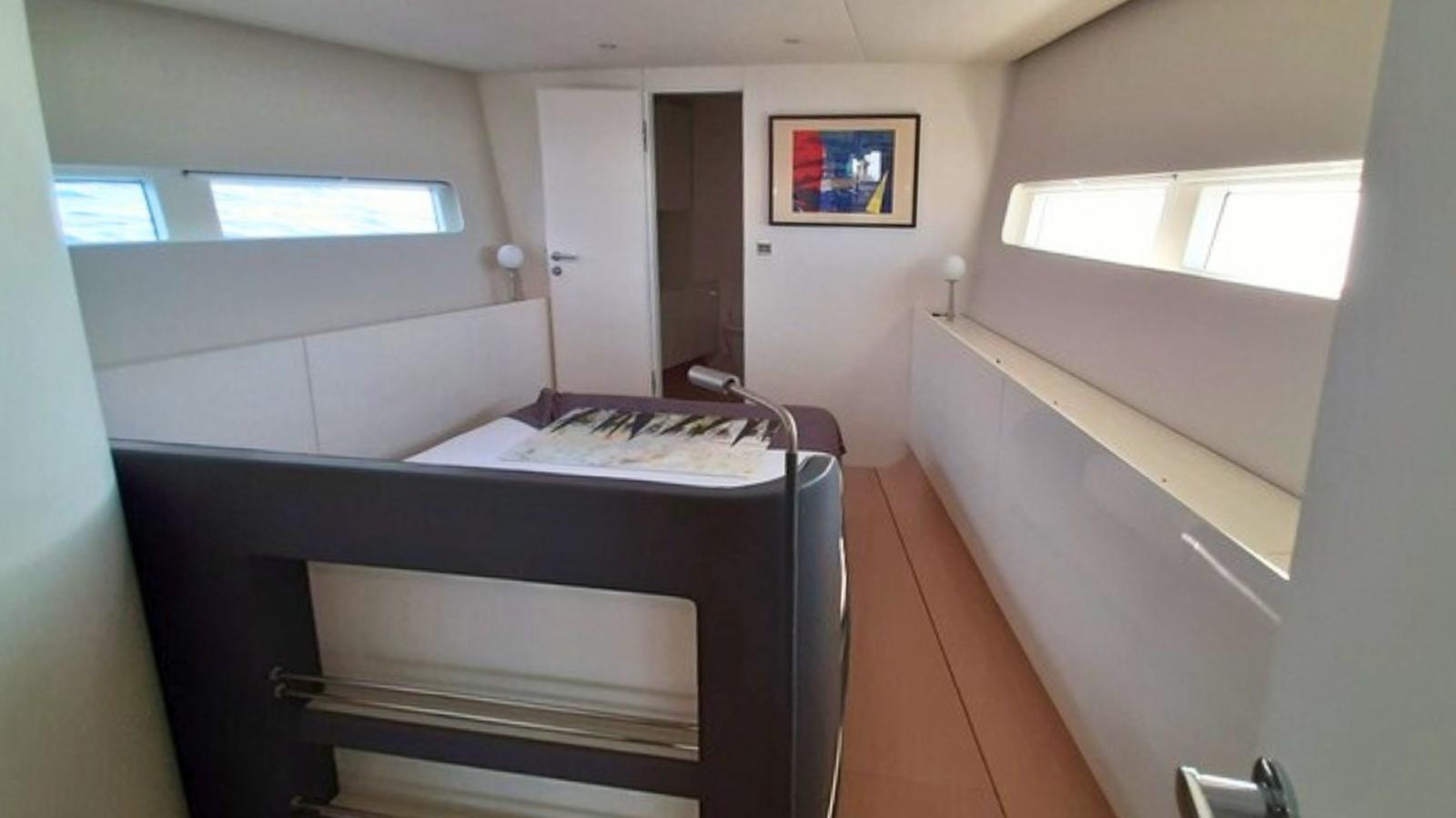 • Cucina a poppa sinistra, tra salone e zona crew, aperta verso il salone.