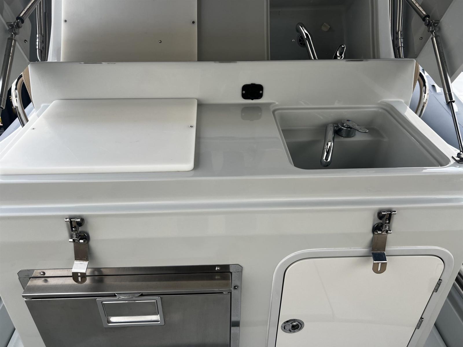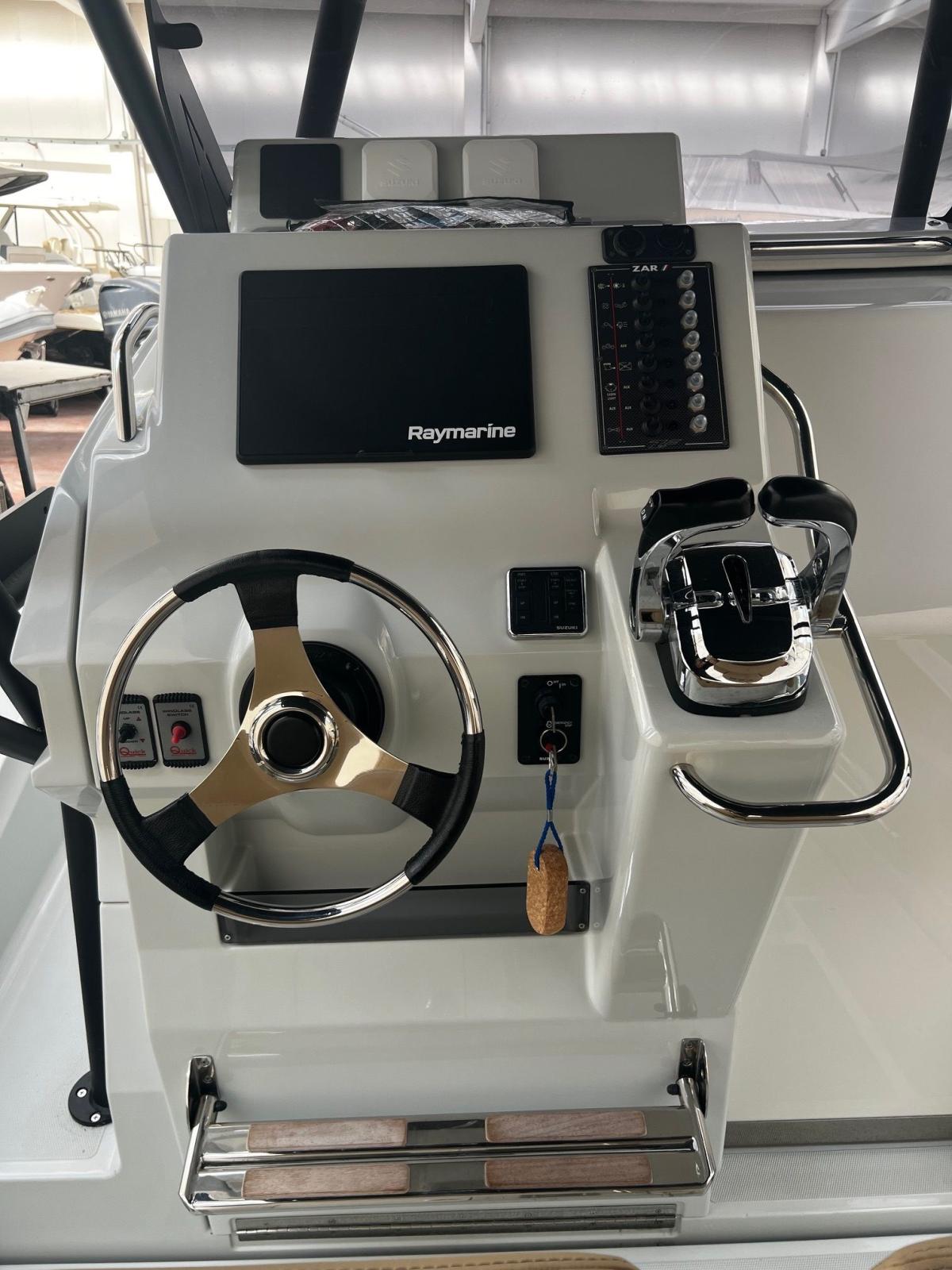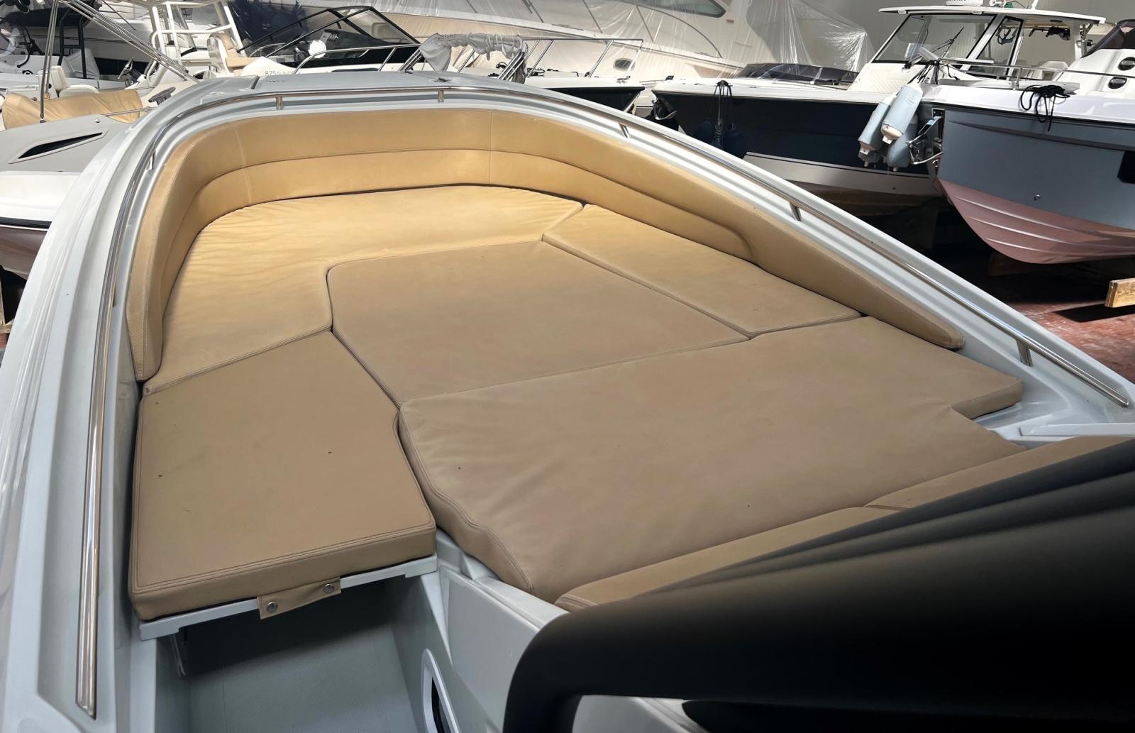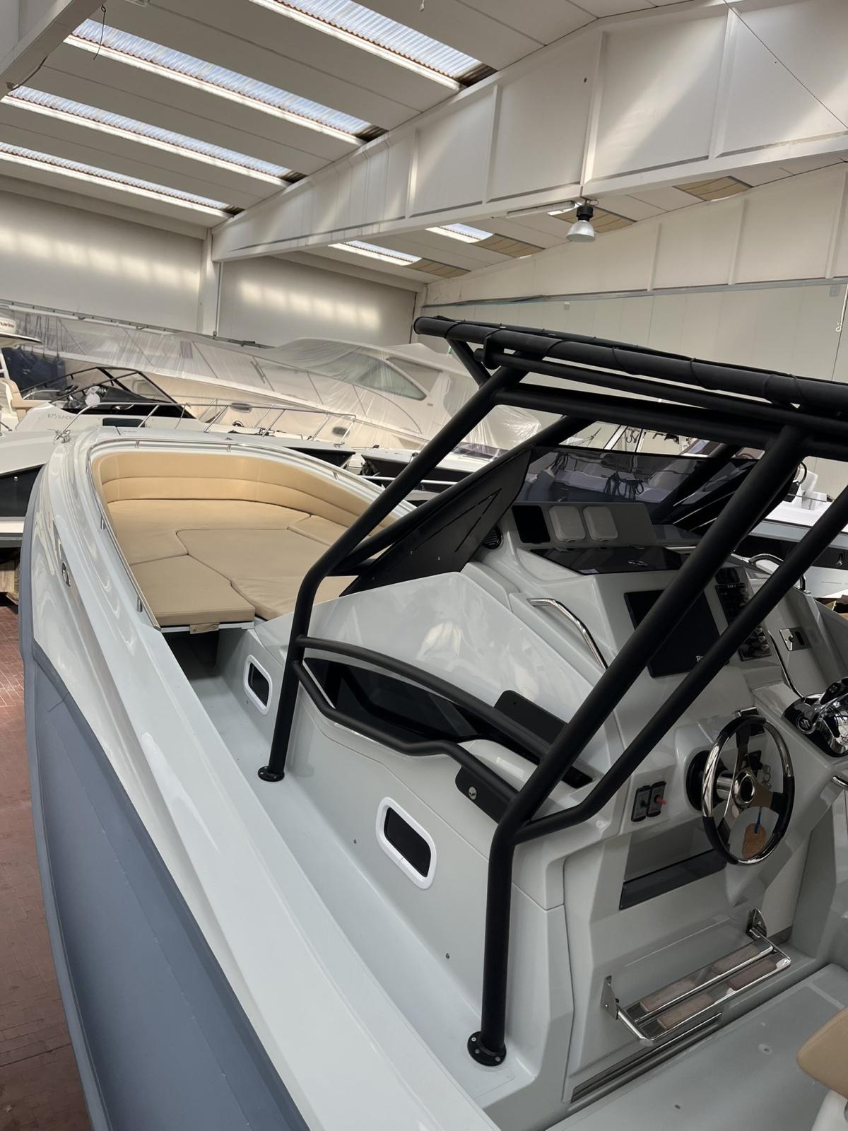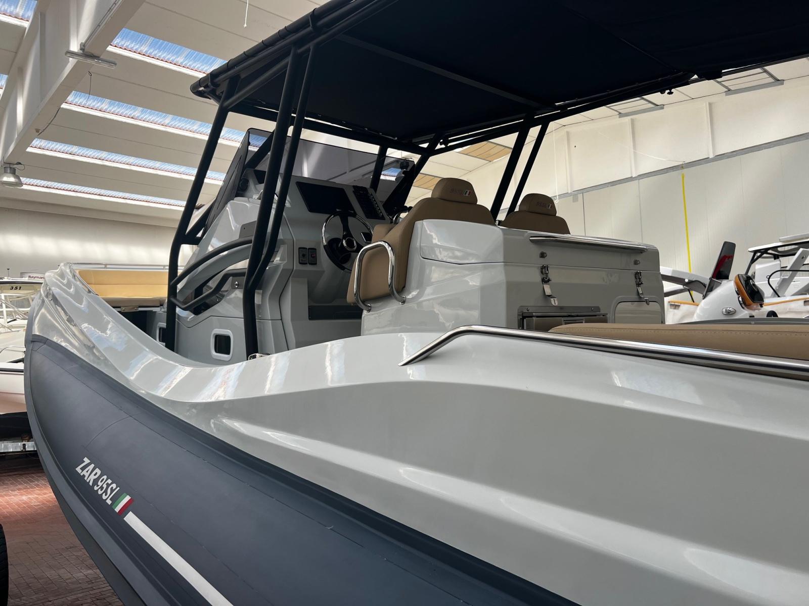 Zar 95 Sport Luxury con 2 Suzuki da 300hp Cabina con letto matrimoniale, bagno separato con wc marino elettrico ed acque nere, lavabo e doccia; divano di poppa ed a prua dove trovano posto due grandi aree prendisole convertibili in altrettante dinette; carena, a V profonda, dotata di redan laterali a garanzia di prestazioni, stabilità e morbidezza in navigazione. Ben accessoriato con T.Top rigido Custom nuovo, doppio tendalino sole estensibile, elettronica completa, Circuito 220 V., Verricello elettrico, Frigorifero e cucina, plancette estese di poppa , cuscinerie complete . Lucidatura completa parti in vtr e tubolari , T Top inox nero satinato nuovo 2025 Condizioni assolutamente eccellenti