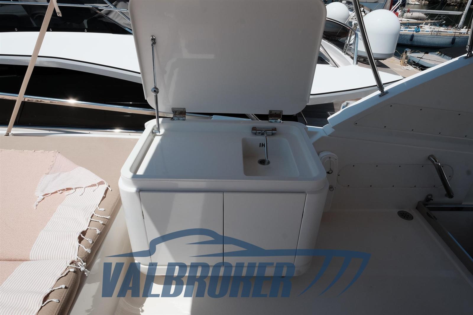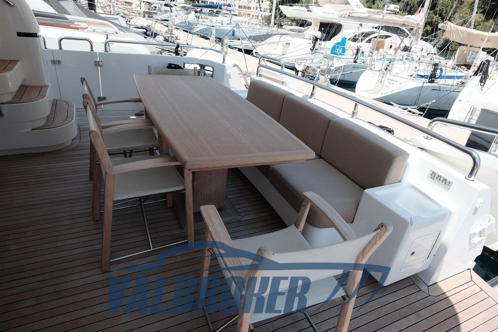 Ancora (2023), Autoclave, Doccia esterna, Doppia timoneria, Elica di rispetto, Faro orientabile, Indicatori Flaps, Passerella (a scomparsa, besenzoni, teak), Piattaforma (teak, elettrica a scomparsa), Porta laterale (cucina), Pozzetto Teak, Presa acqua banchina, Salpa Ancore Elettrico, Scaletta da bagno, Tavolo pozzetto (teak), Tender (Yamaha 25 HP), Winch tonneggio di poppa.