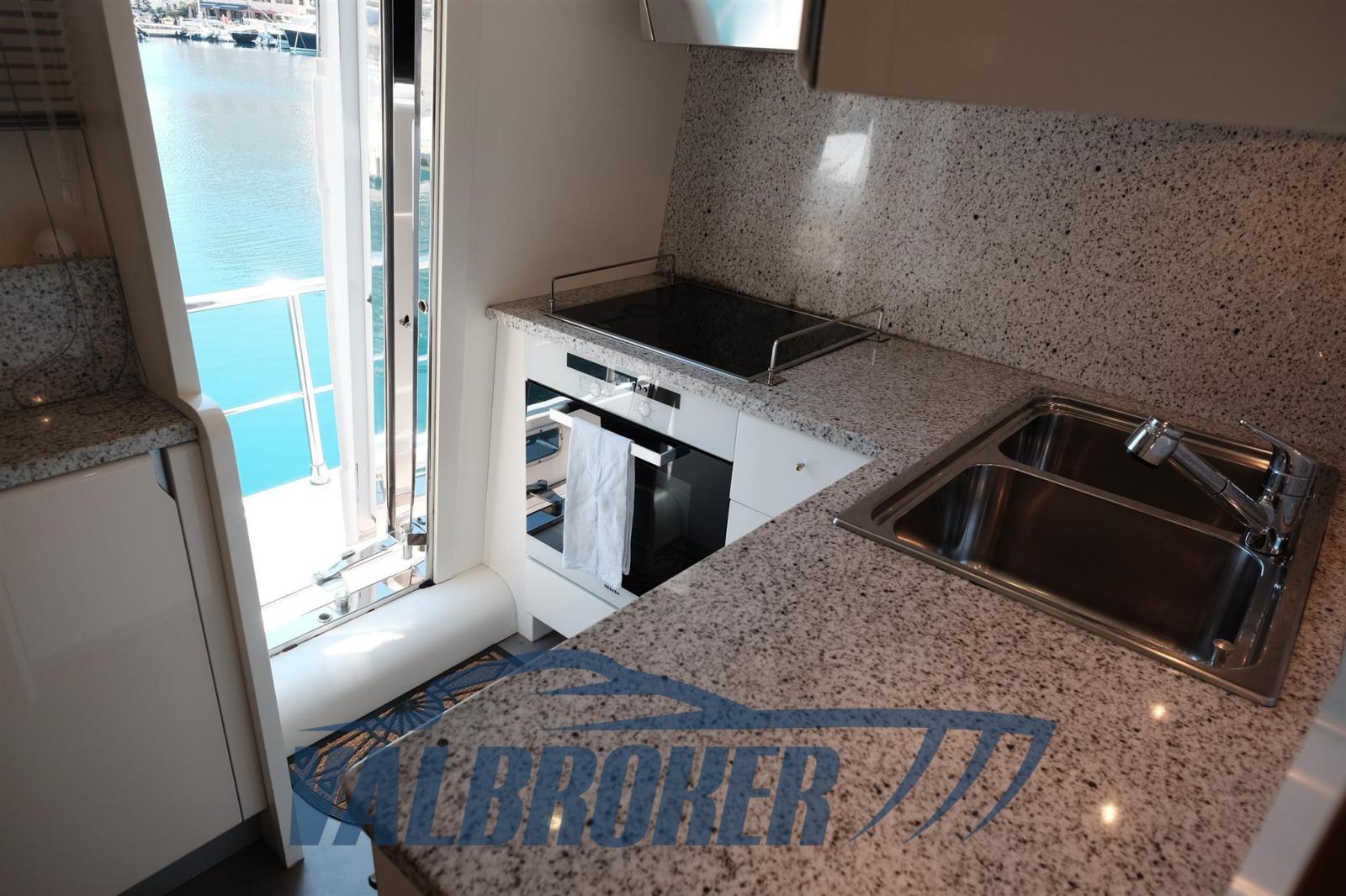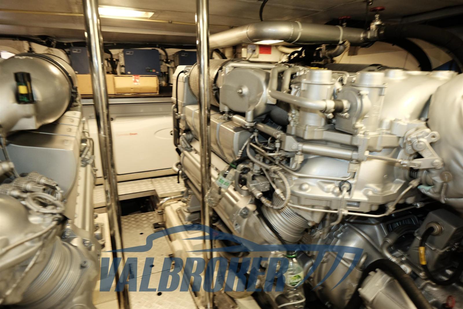 Motori 2x1100 MTU in linea d'assi. Pavimento in noce scuro con interni chiari. Cucina separata. Full Optional: generatore, aria condizionata, pilota automatico, Tender Zodiac 3,4mt con Motore fuoribordo Yamaha 30HP, elica di prua e di poppa, compandi motori elettronici.