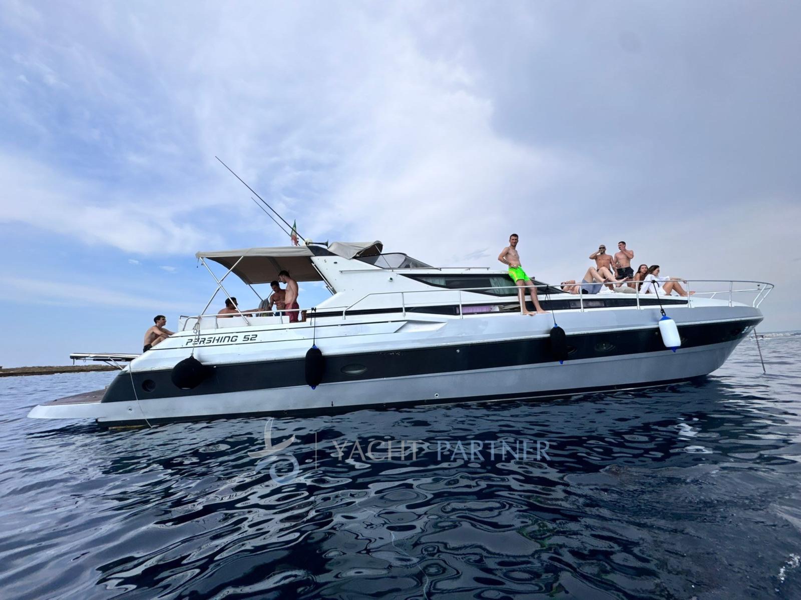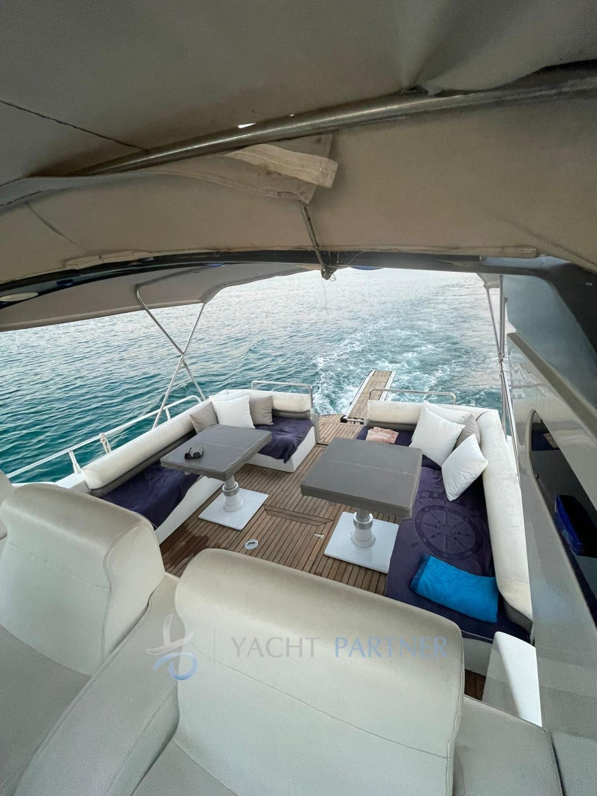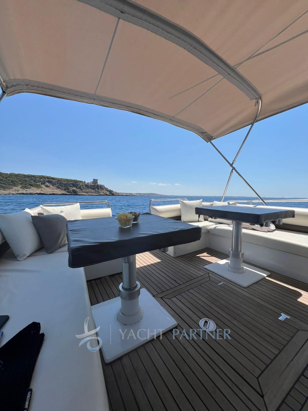 Allarme motore, Allarme sentina, Alternatore, Autoclave, Camminamenti laterali in teak, Doccia esterna, Flap elettrici, Luci di cortesia, Parabordi, Pompa di sentina manuale, Ponte in teak, Presa 220V banchina, Salpa Ancore Elettrico, Scaletta da bagno, Tavolo pozzetto.