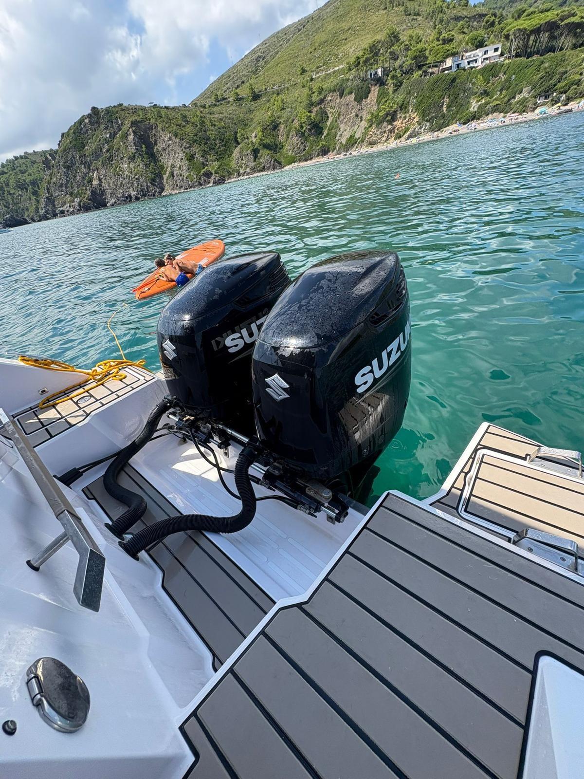 Impianto per batteria addizionale, kit led interni ed esterni, Kit tende interne (fatte fare da tappezziere), Garmin 12", cubia ancora in acciaio inox, cuscineria cabina, impianto doccia completo, kit tavolo e prendisole di poppa elettrico, plancetta di pppa VTR con scala telescopica , tappezzeria Luxury, tavolo cabina telescopico, timoneria idraulica, bottazzo in acciaio,oblò passo uomo apribile di prua, 2 bitte aggiuntive.