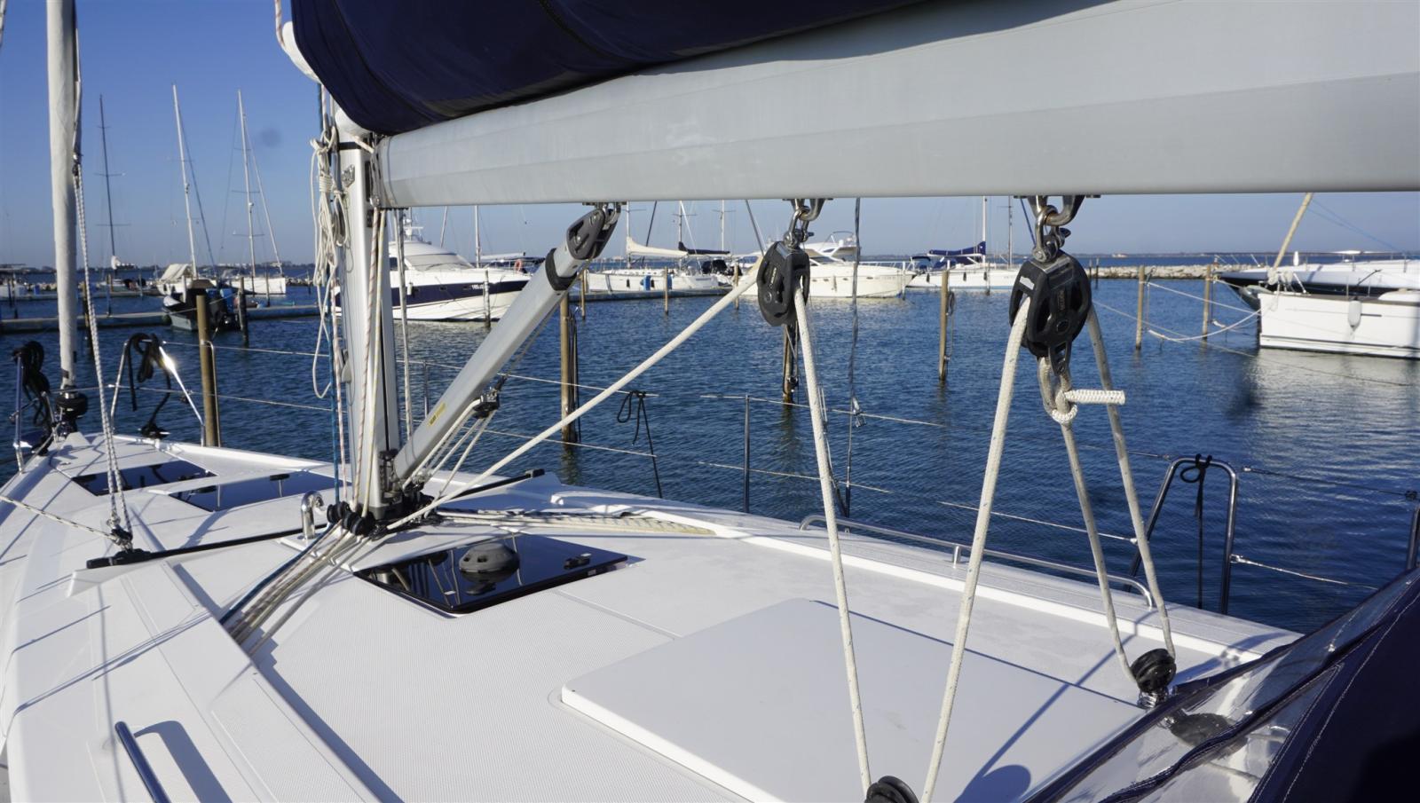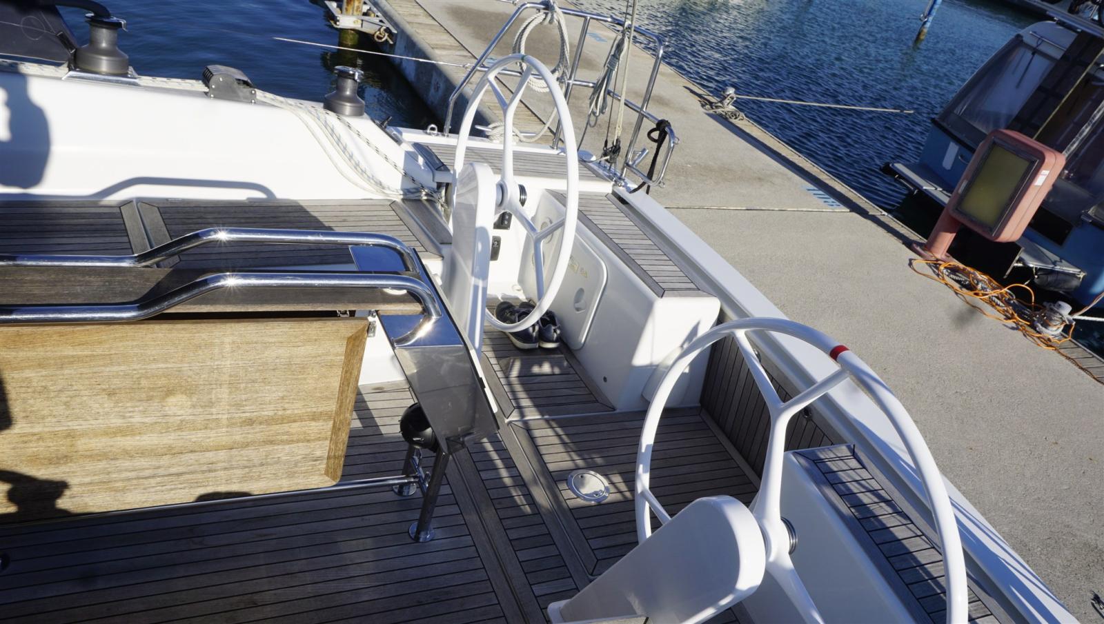 Allarme motore, Ancora (ULTRA 16 kg Inox + 50 m chain ss 8 mm + swivel ss), 2 Batterie, Doccia esterna (h/c), Doppia timoneria, Luci di cortesia (SLS Light system), Monitor batteria, Pompa di sentina manuale, Pozzetto Teak, Presa 220V banchina, Salpa Ancore Elettrico, Scaletta da bagno, Tavolo pozzetto, Tientibene con cancelletti, 2 Winch (Lewmar 40 ST EVO), 2 Winch Elettrico (Lewmar 40 ST EVO), Windex.
