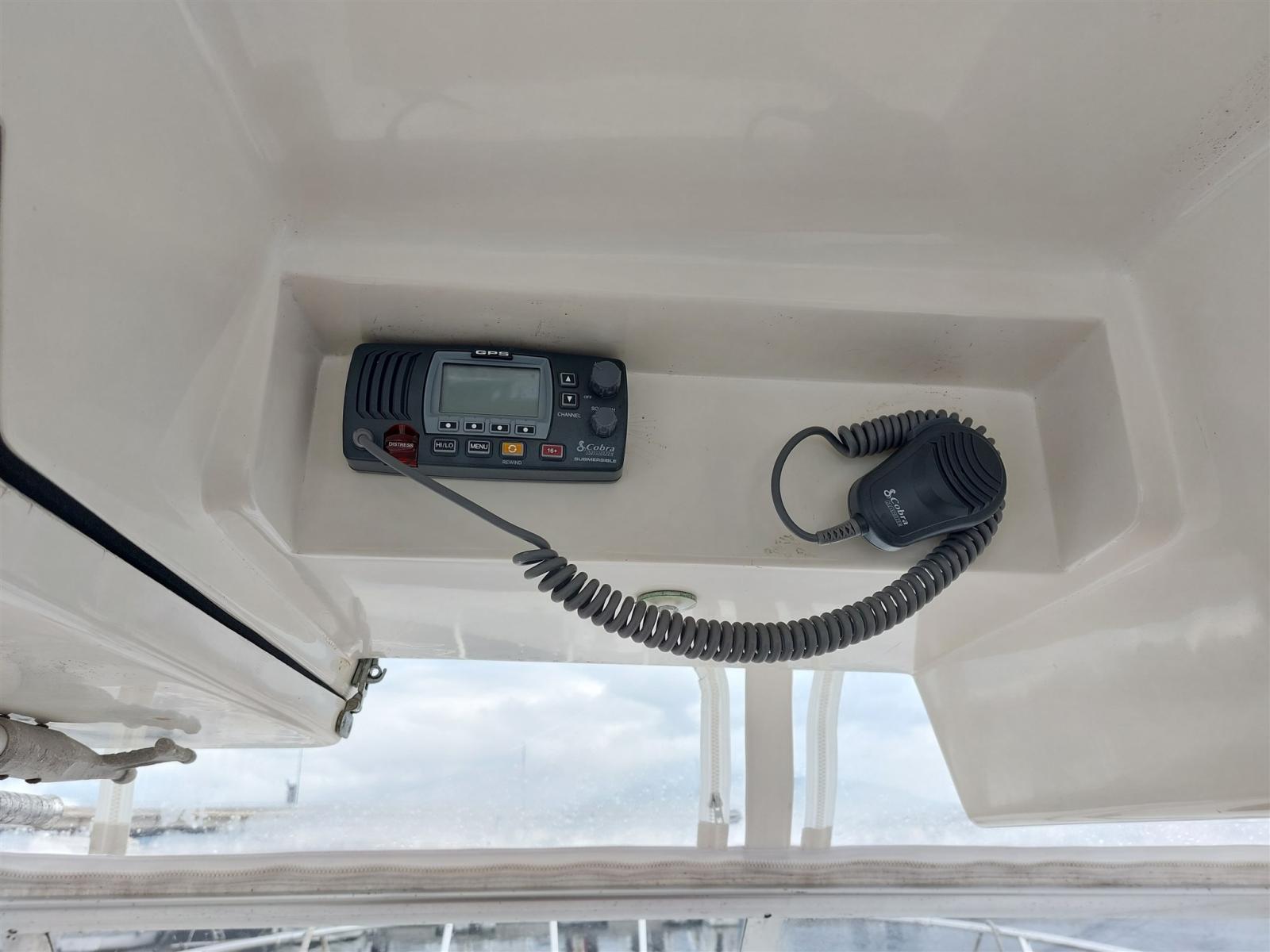 Plotter (Raymarine E120), Radio VHF (Cobra).