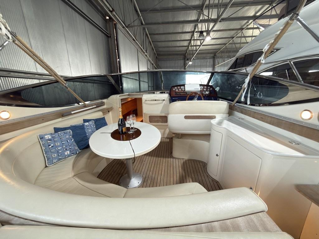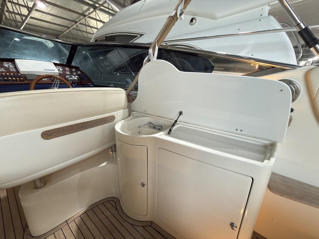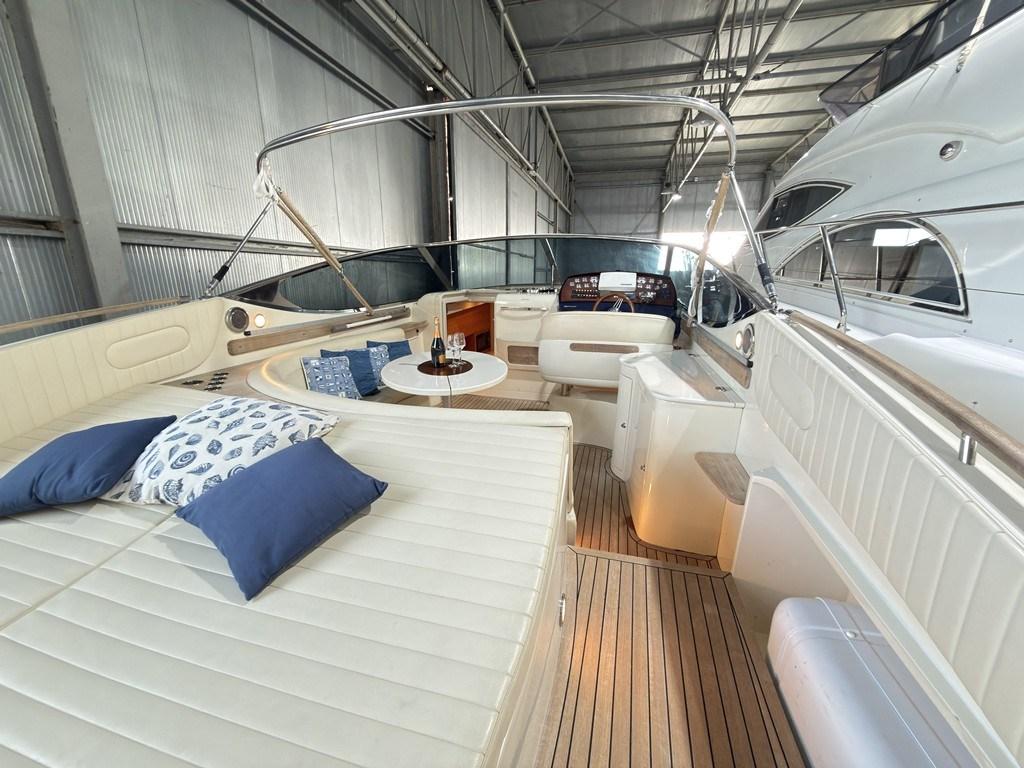 Autoclave, Cavo corrente di banchina, Colorazione speciale (Fascia blu nelle fiancate), Doccia esterna, Flap elettrici, Lavandino nel Pozzetto, Luci di cortesia, Passerella (a scomparsa), Pozzetto Teak, Presa 220V banchina, Salpa Ancore Elettrico.