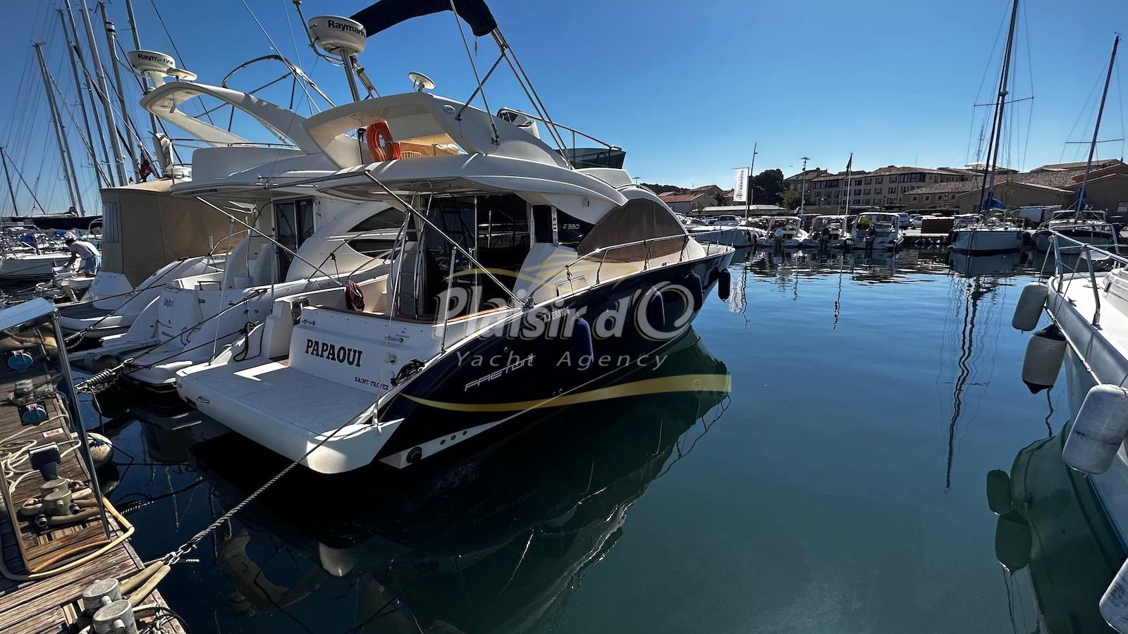 Rare � la vente !Fateon F-360 Fly avec seulement 89h de fonctionnement.Dispose de tr�s grands volumes et beaucoup de confort.Version 2 cabines et une salle d?eau avec cabine de douche s�par�e.Motorisation Volvo Penta D4-300 avec transissions par lignes d?arbres assurant une grande fiabilit�.Bateau suivi par Profesionnels.