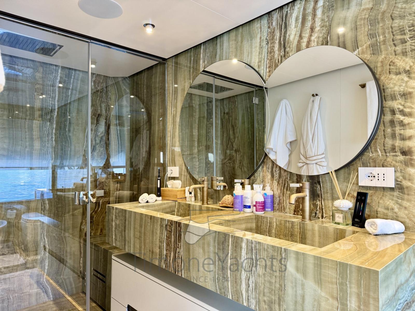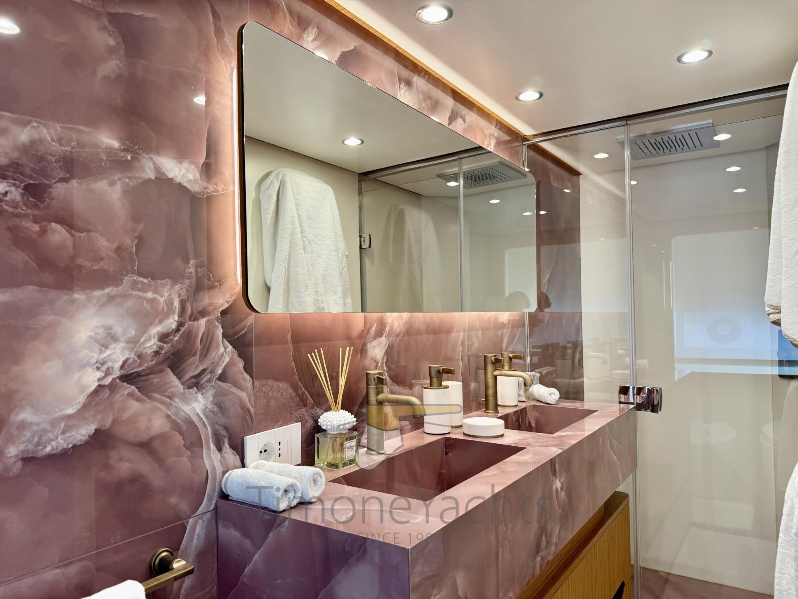 Ognuna delle restanti 3 cabine ospiti, al ponte inferiore, potrebbe facilmente fungere da seconda cabina armatoriale, sia per lo spazio che per la pregio dei materiali.