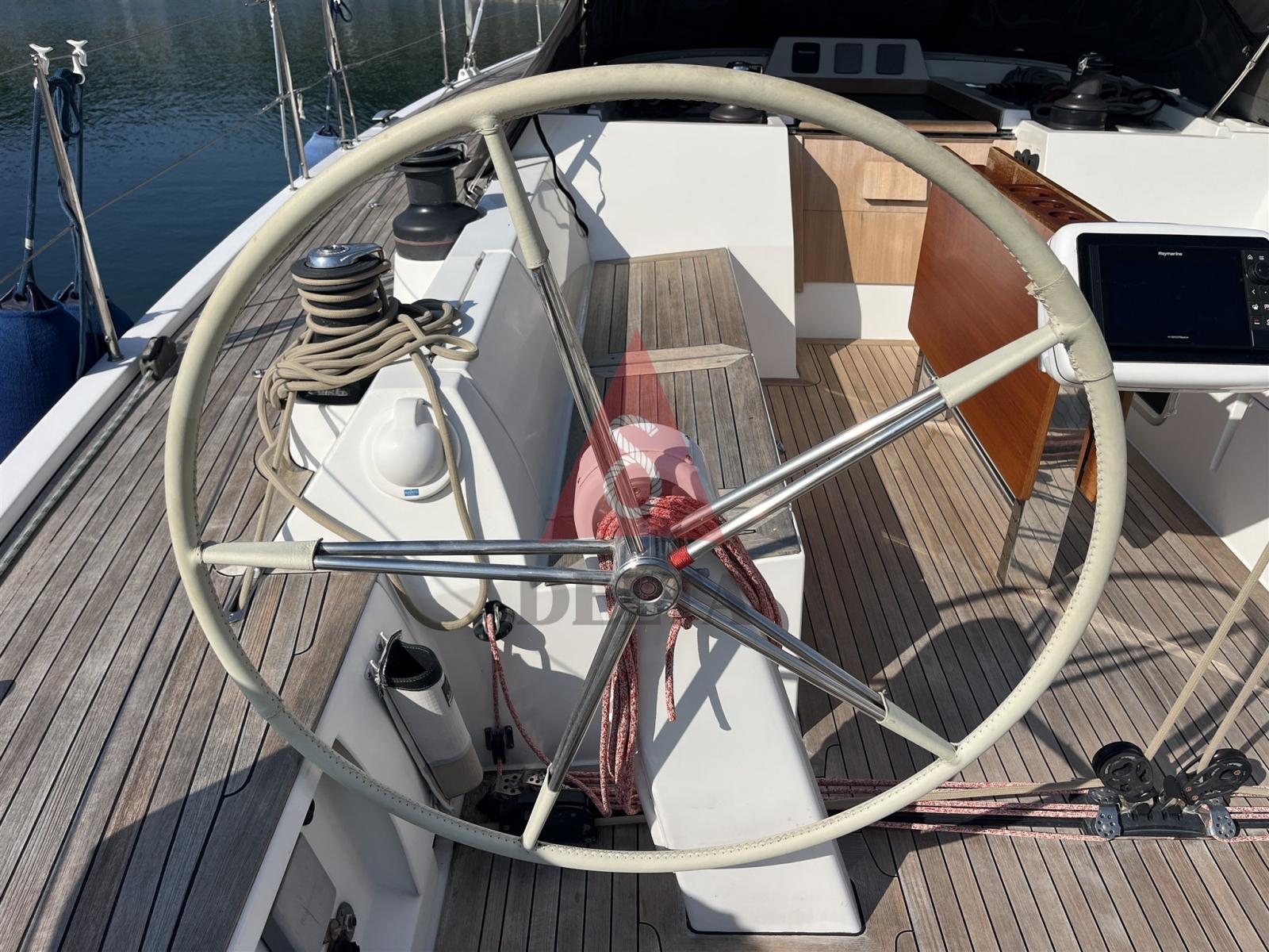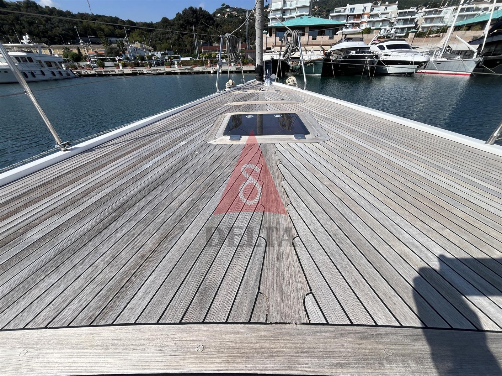 Allarme motore, Ancora (Delta 20 Kg + 70 mt. catena inox 10 mm), Aspirazione dal Ponte delle Acque Sporche, Autoclave, 6 Batterie (6V 200Ah/cad), Bitte Abbattibili, Camminamenti laterali in teak, Caricabatterie (Mastervolt MASS 12/80), Doccia esterna, Doppia timoneria, Garage per tender, Luci di cortesia (sul boma), Monitor batteria, Pannelli Solari (predisposizione), Passerella (in carbonio Carbonway), Piattaforma (apribile elettricamente), Pompa di sentina automatica, Pompa di sentina manuale, Pompa per Acqua di Mare (a pedale per lavandino cucina), Ponte in teak, Pozzetto Teak, Presa 220V banchina, Salpa Ancore Elettrico, Sartiame in tondino, Scaletta da bagno, Supporto motore fuoribordo (nel garage), Tavolo pozzetto, 2 Tientibene con cancelletti, Tromba, Tuga in teak, 5 Winch, Windex.