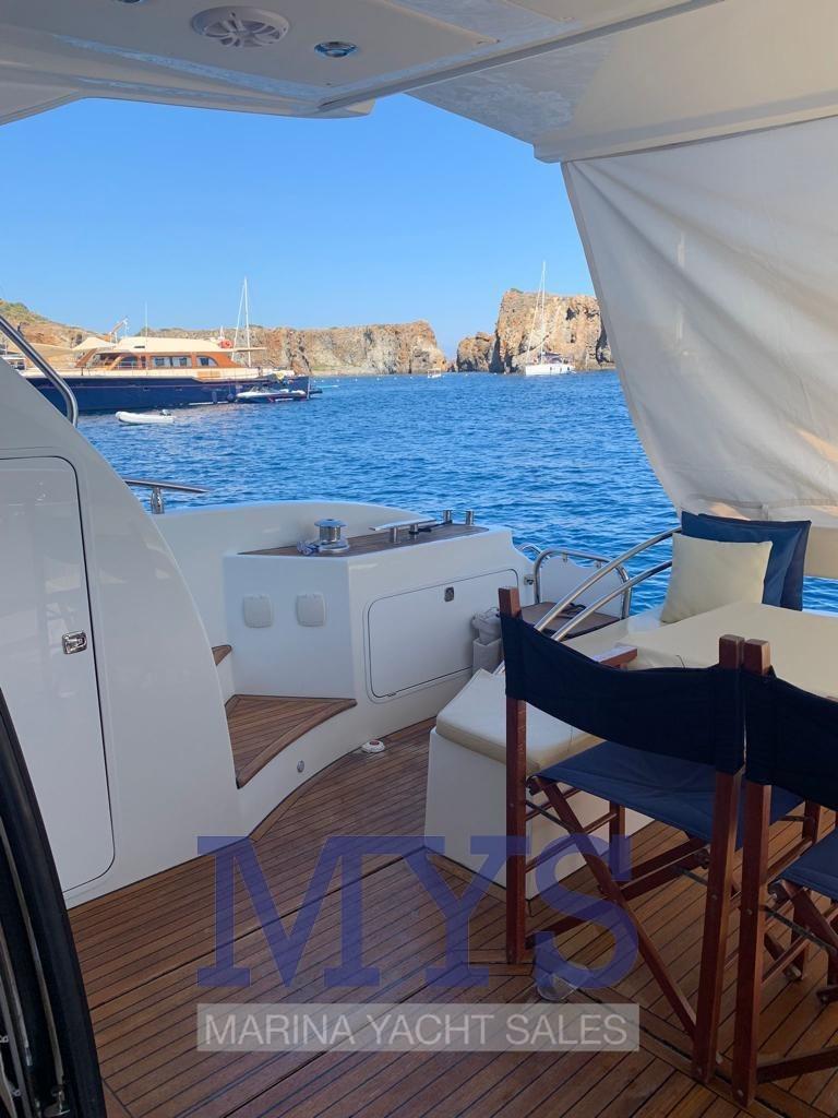 Allarme motore, Allarme sentina, Autoclave, Colorazione speciale (Scafo blu), Doccia esterna, Flap idraulici, Luci di cortesia, Luci subacquee, Passerella, Pompa di sentina automatica, Pompa di sentina manuale, Pozzetto Teak, Presa 220V banchina, Salpa Ancore Elettrico, Scaletta da bagno, Tavolo pozzetto, Tromba, Winch tonneggio di poppa.