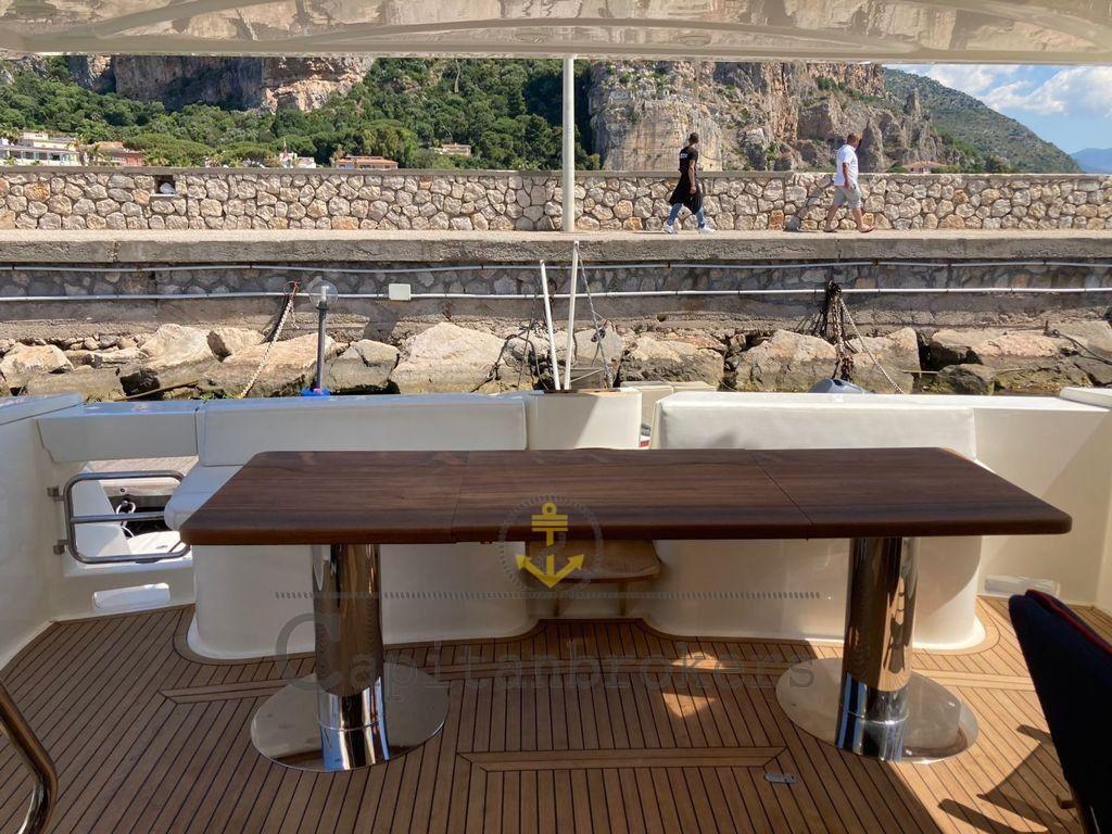 Allarme motore, Allarme sentina, Autoclave, Luci subacquee (led), Passerella (estraibile), Piattaforma, Pompa di sentina automatica, Pompa di sentina manuale, Porta ingresso, Pozzetto Teak, Presa 220V banchina, Salpa Ancore Elettrico, Scaletta da bagno (teak e acciaio), Tavolo pozzetto (teak con piedi in acciaio), Tender (+ mt fb), Tromba.