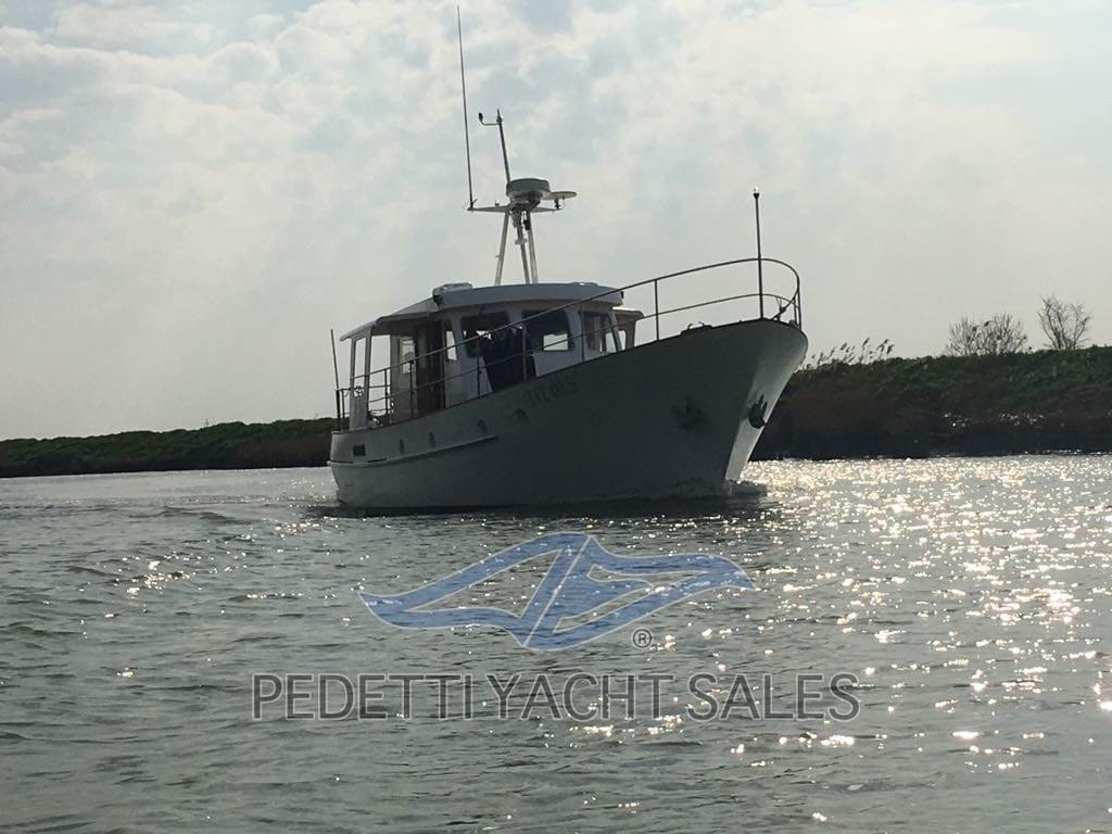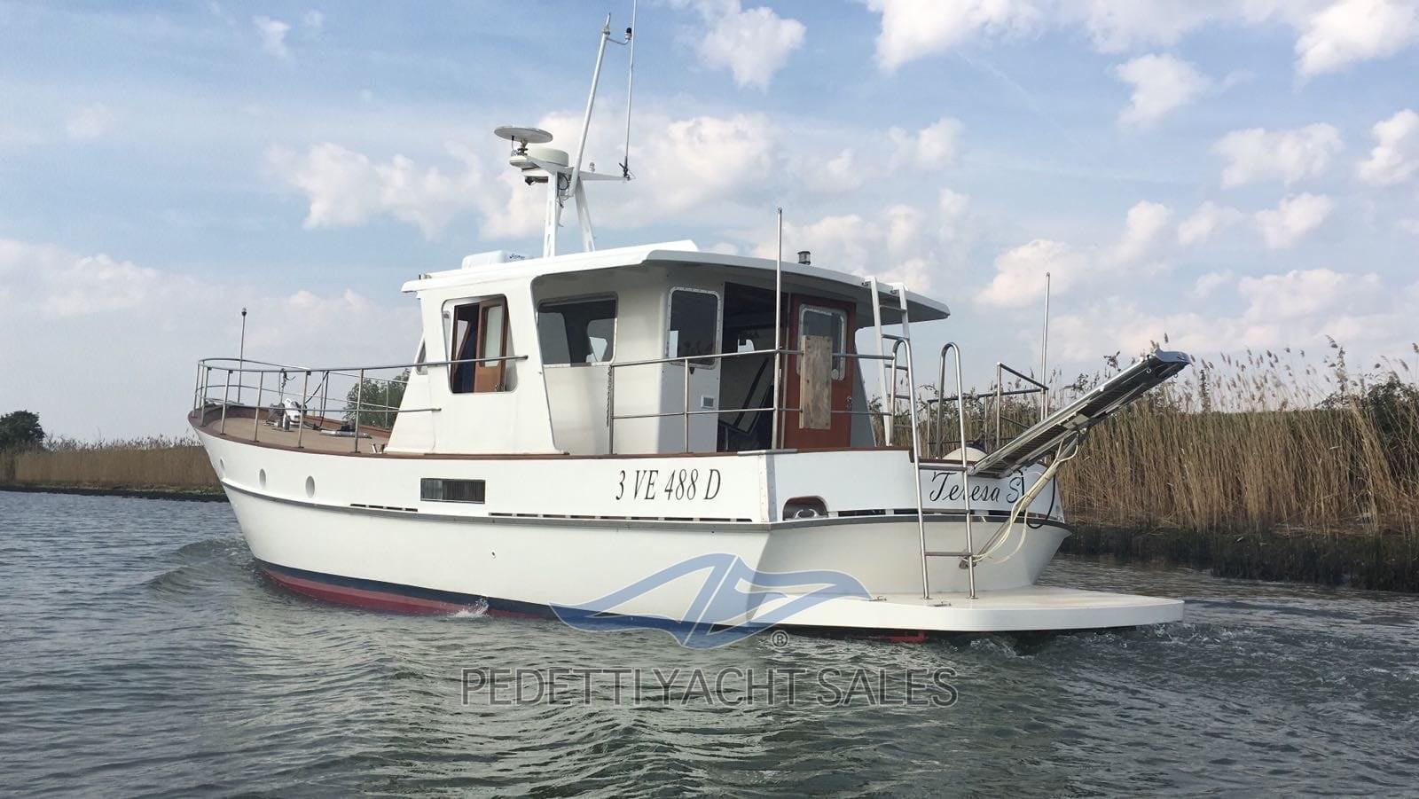 Costum Trawler di 13 metri completamente refittato completamente in legno massello e teak. Lavori eseguti 2015 motori ricondizionati, 2018 teak prua, 2021 bagno totalemente nuovo in corian, 2022 Garmin con pilota automatico e whf, 2024 generatore con impianto di climatizzazione caldo/freddo. Il Cantiere Nautico Rondolini di Pesaro, fondato negli anni '50 dal maestro d'ascia Rondolini, si è distinto per la costruzione di imbarcazioni robuste, eleganti e di qualità artigianale. Specializzato in motoscafi e yacht in legno, il cantiere ha saputo combinare la tradizione nautica italiana con un design raffinato e funzionale, rivolgendosi a una clientela attenta sia alle prestazioni in navigazione sia all'estetica. Le imbarcazioni firmate Rondolini sono conosciute per la loro solidità ed affidabilità, ideali sia per la navigazione costiera che per crociere più impegnative, con interni curati e spazi ben distribuiti per garantire comfort e sicurezza a bordo. Il cantiere ha rappresentato un punto di riferimento nella cantieristica artigianale marchigiana, mantenendo vivo il valore del mestiere tradizionale con un approccio all’innovazione e dettaglio.