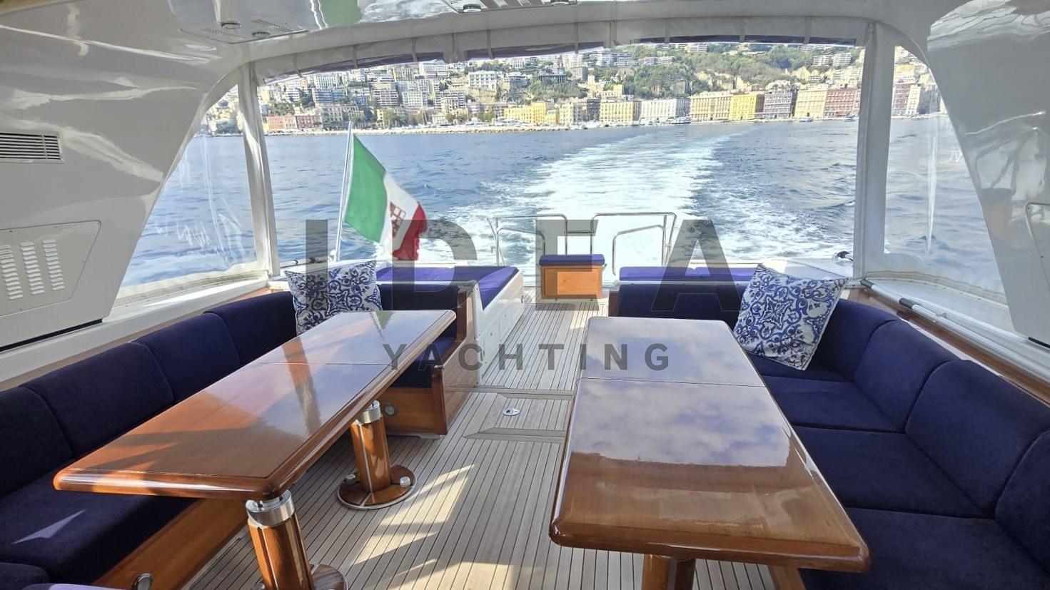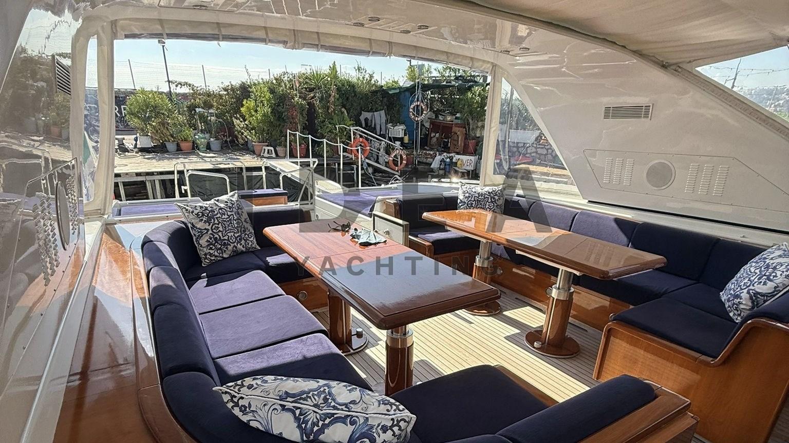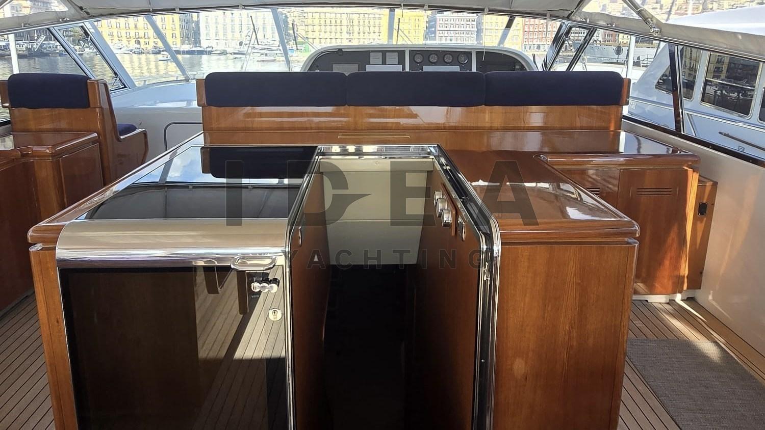 Allarme motore, Impianto antincendio, Passerella (Hydraulic), Piattaforma, Pozzetto Teak, Scaletta da bagno, Tavolo pozzetto, Tender (3.80m o/b Yamaha 40hp), Tromba.
