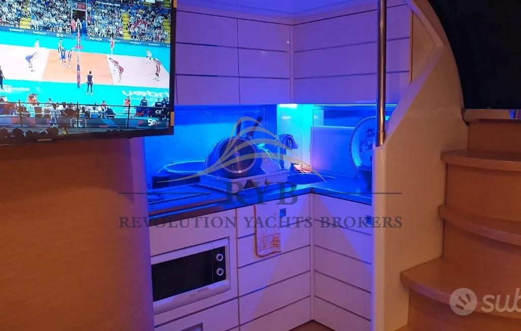 Batterie (2024/2025), Flap elettrici, Garage per tender, Luci di cortesia (LED), Luci subacquee (POPPA E LATERALI), Motore fuoribordo per tender, Passerella (TEAK BESENZONI - IDRAULICA A SCOMPARSA), Pozzetto Teak, Presa 220V banchina, Salpa Ancore Elettrico, Scaletta da bagno, Tavolo pozzetto, Tavolo Salone Abbattibile, Tender.