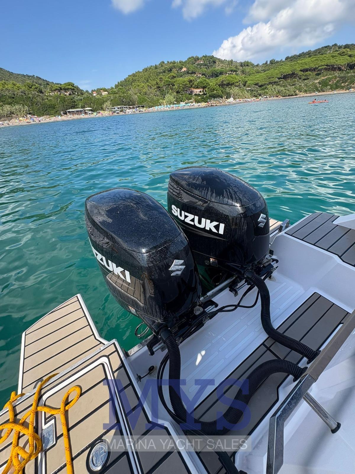 Allarme motore, Autoclave, Doccia esterna, Flap elettrici, Lavandino nel Pozzetto, Luci di cortesia, Pompa di sentina automatica, Porta ingresso, Salpa Ancore Elettrico, Scaletta da bagno, Tavolo pozzetto, Tavolo Salone Abbattibile, Tromba.