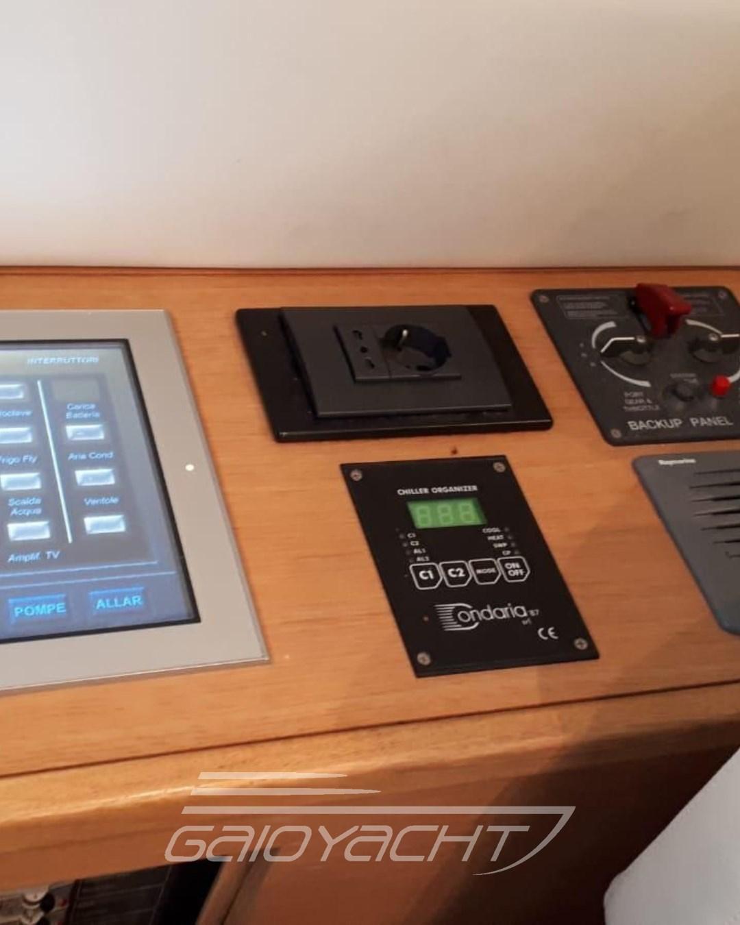 Camminamenti laterali in teak (Con trattamento olio), Caricabatterie (Anno 2022), Flap idraulici (Timoneria plancetta), Impianto antincendio (Revisione), Impianto Aria Compressa, Presa 220V banchina.