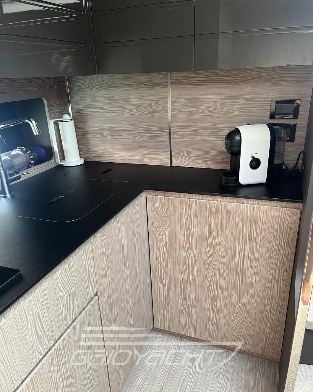 Impianto audio/video in cabina armatoriale; Plancettra in teak; Piano cottura in pozzetto.