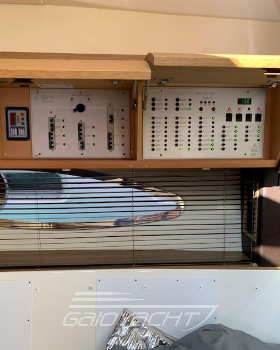 Allarme fumo/gas, Allarme motore, Allarme sentina, Autoclave, 5 Batterie (2 per i moti; 2 servizi; 1 generatore), Doccia esterna, Hard top (elettrico 12v), Impianto antincendio, Impianto Aria Compressa, Luci di cortesia, Piattaforma, Pompa di sentina automatica, Pompa di sentina manuale, Pozzetto Teak, Presa 220V banchina, Presa acqua banchina, Salpa Ancore Elettrico, Scaletta da bagno, Stabilizzatori, Tavolo pozzetto (sali e scendi).