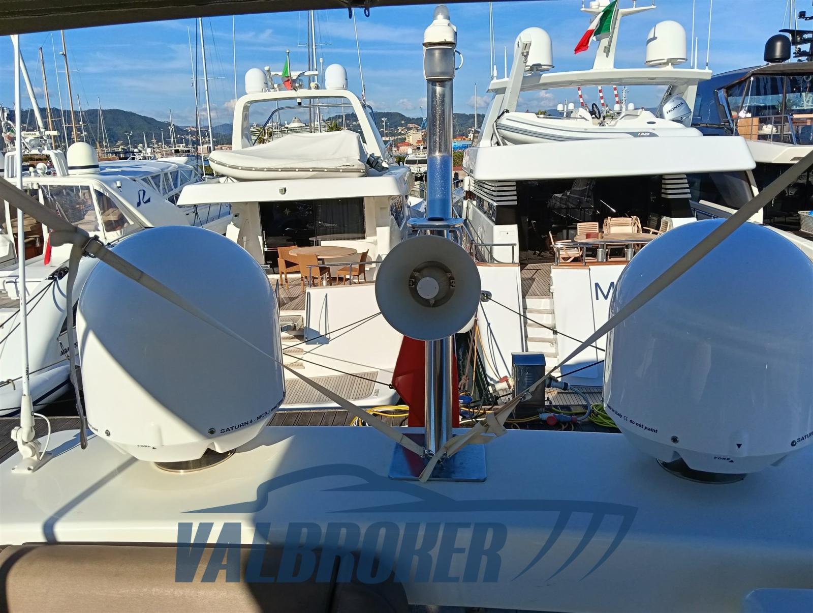 Allarme motore, Autoclave, 3 Batterie, Doccia esterna, Doppia timoneria, Elica di prua - bow thruster (Side Power), Faro orientabile (Osculati), Flap elettrici, Indicatori Flaps (Bennett), Luci di cortesia, Passerella (teak), Piattaforma (teak), Pompa di sentina automatica, Porta ingresso, Pozzetto Teak, Presa 220V banchina, Salpa Ancore Elettrico, Scaletta da bagno, Tavolo pozzetto, Tavolo Salone Abbattibile, Tientibene con cancelletti, Tromba, 3 Winch Elettrico, Winch tonneggio di poppa, Winch tonneggio di prua.