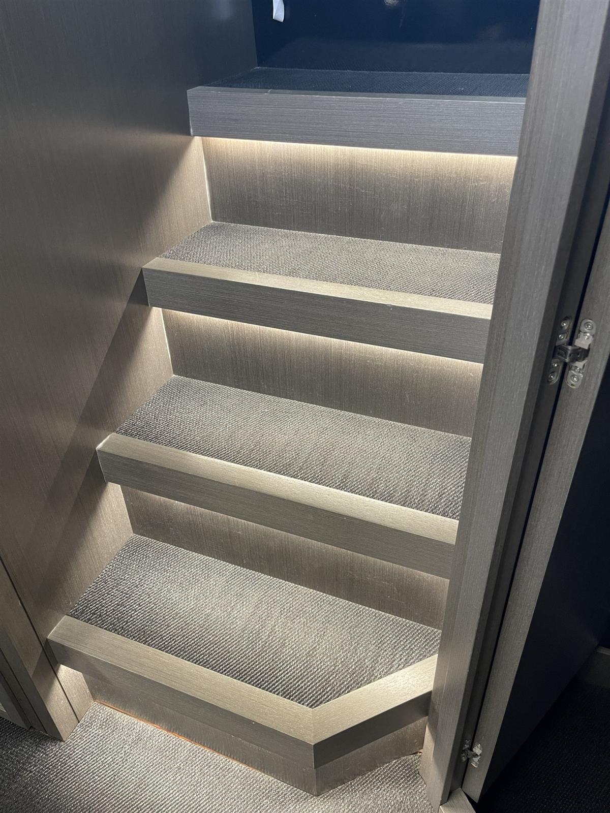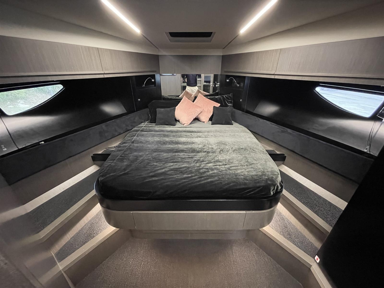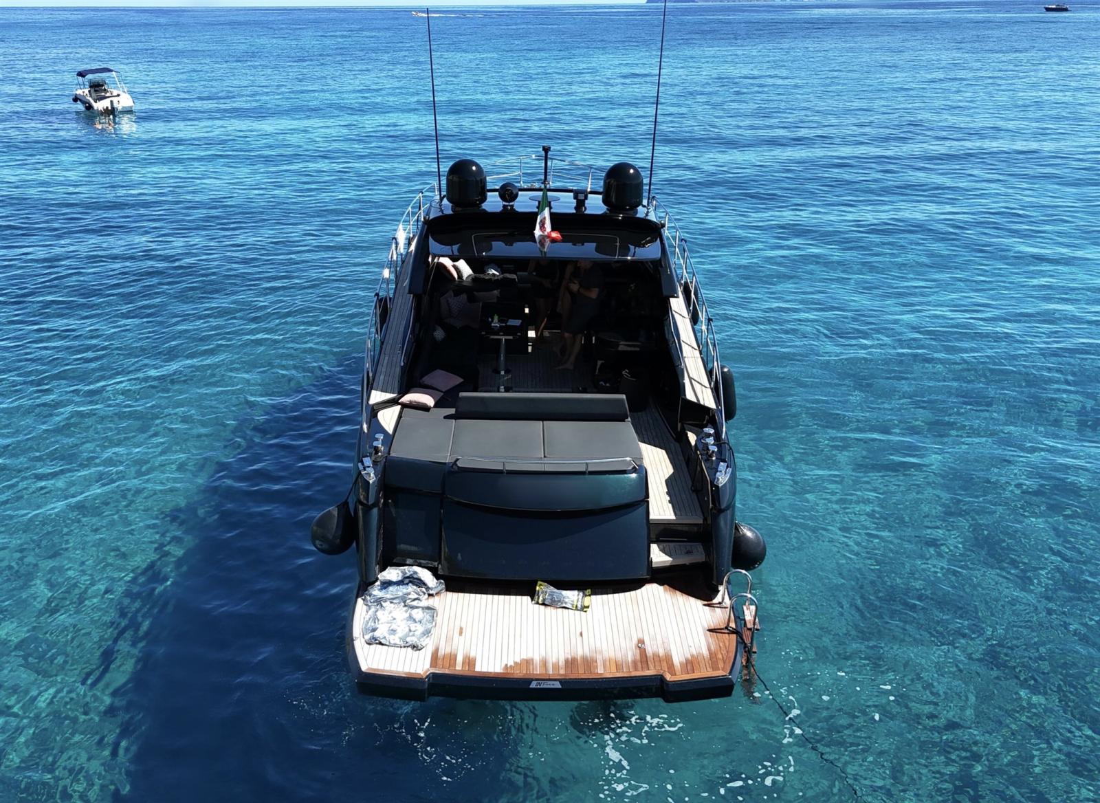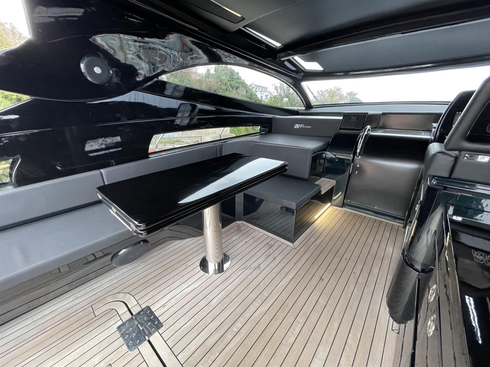 Allarme fumo/gas, Allarme motore, Allarme sentina, Apertura Vano Motore Elettrica, Camminamenti laterali in teak, Colorazione speciale, Corrimano, Corrimano di sicurezza, 2 Doccia esterna, Faro orientabile, Flap elettrici, Flap idraulici, Hard top, Impianto antincendio, Indicatori Flaps, Lavandino nel Pozzetto, Luci di cortesia, Luci subacquee, Monitor batteria, Passerella, Pompa di sentina automatica, Pompa Lavaggio Ponte, Ponte in teak, Pozzetto Teak, Presa 220V banchina, Presa acqua banchina, Salpa Ancore Elettrico, Scaletta da bagno, Tavolo pozzetto (Apribile), Tromba, 2 Winch Elettrico.
