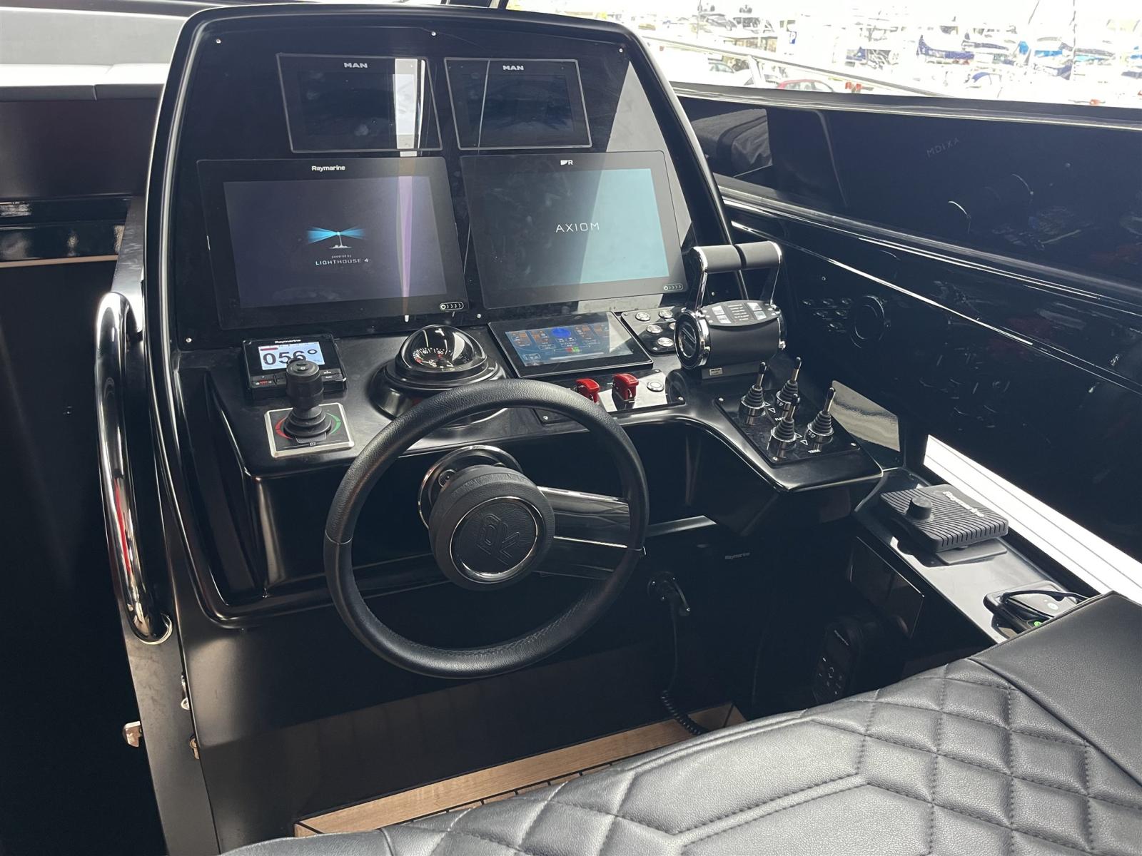 Comando motori elettronico, Computer di bordo, Contametri catena, Display, DSC vhf, Joystick (Trim e flap), Mappe e guide, Plotter con antenna GPS, Radio VHF (Raymarine), Sedile Copilota.