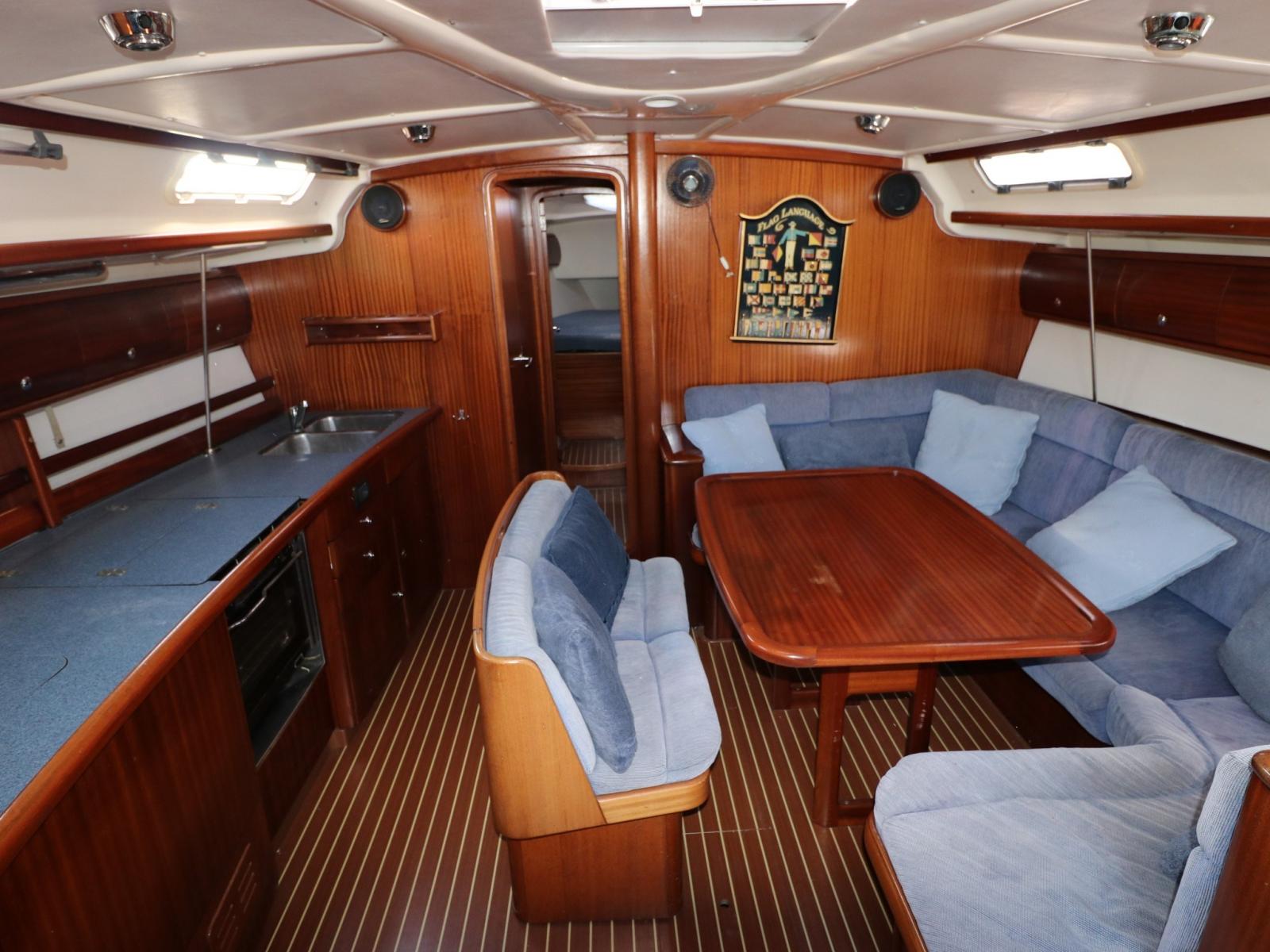 Interni spaziosi e funzionali: 4 cabine, 2 bagni, grande dinette e cucina attrezzata per lunghe permanenze a bordo. Perfetta per uso privato e per chi desidera un’ottima base per charter.