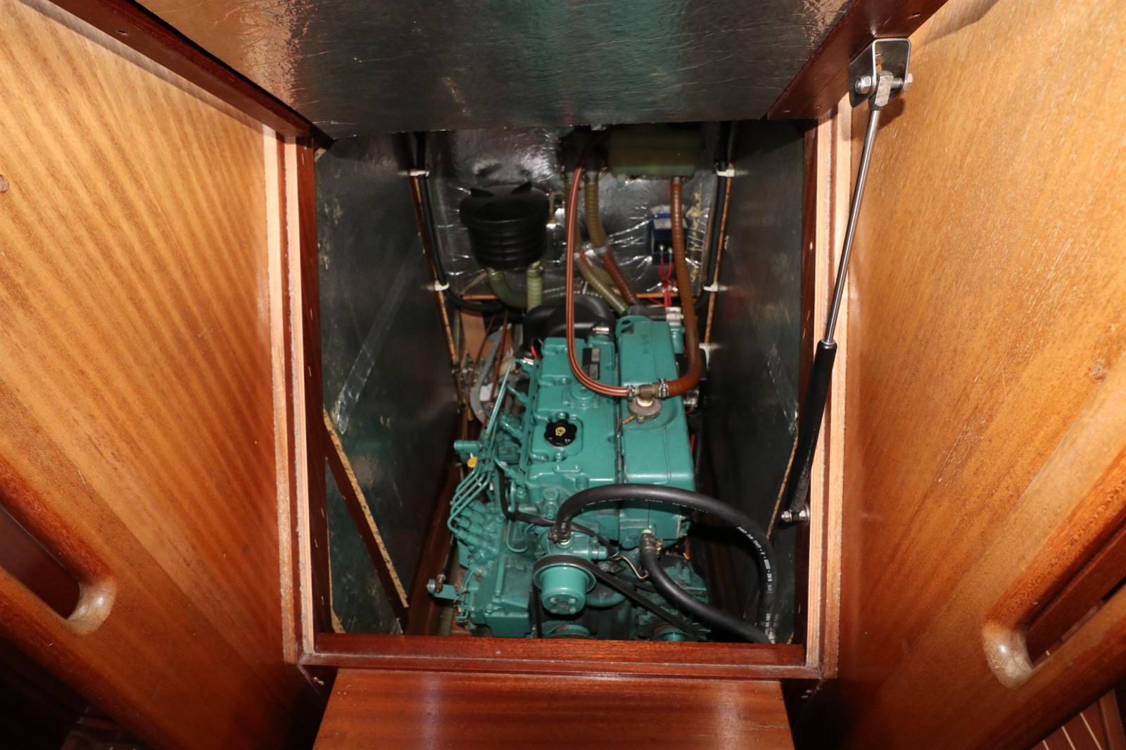 Motorizzata Volvo Penta 55 HP, dotata di avvolgiranda e avvolgifiocco, pozzetto in teak, bimini e cappottina: gestione semplice e sicura anche in equipaggio ridotto, con tutta la solidità che ci si aspetta da Bavaria.
