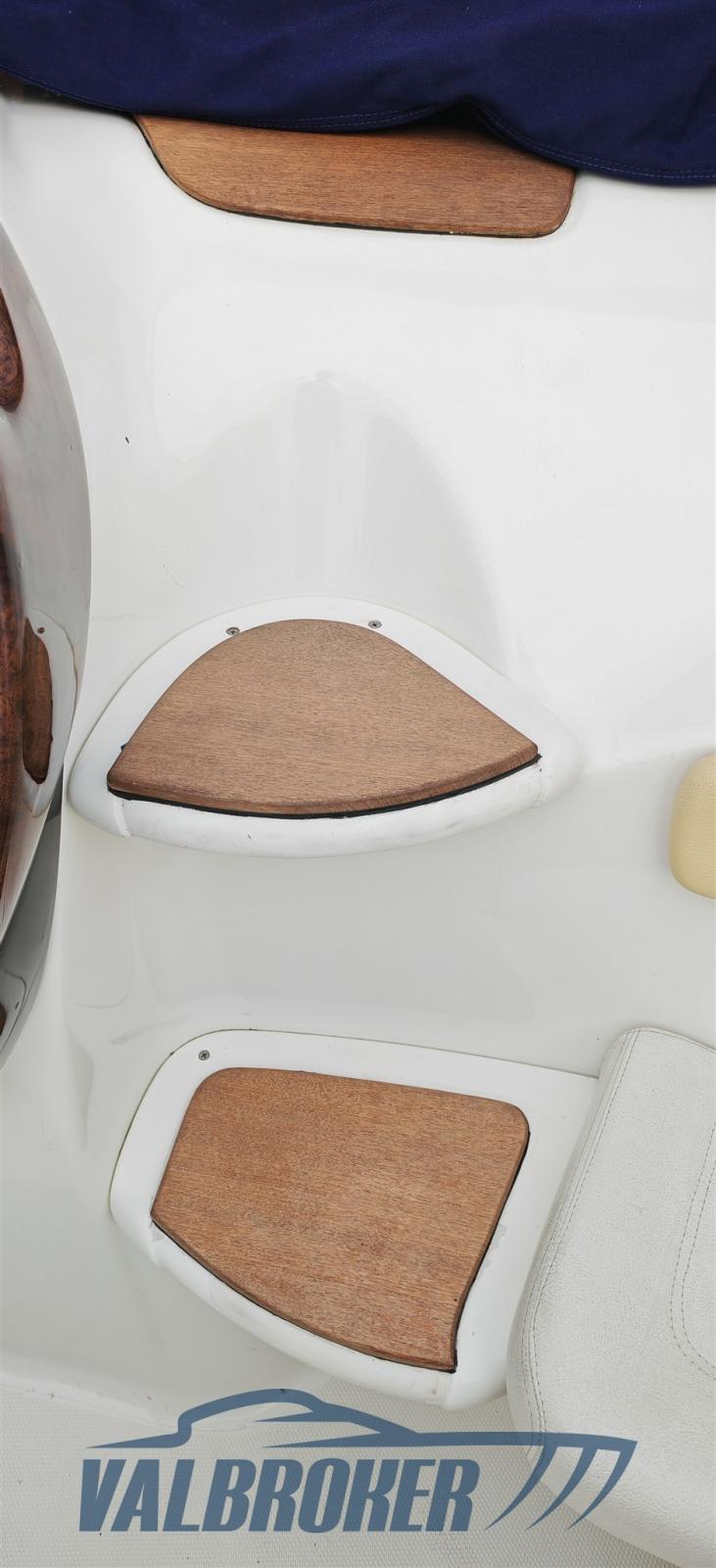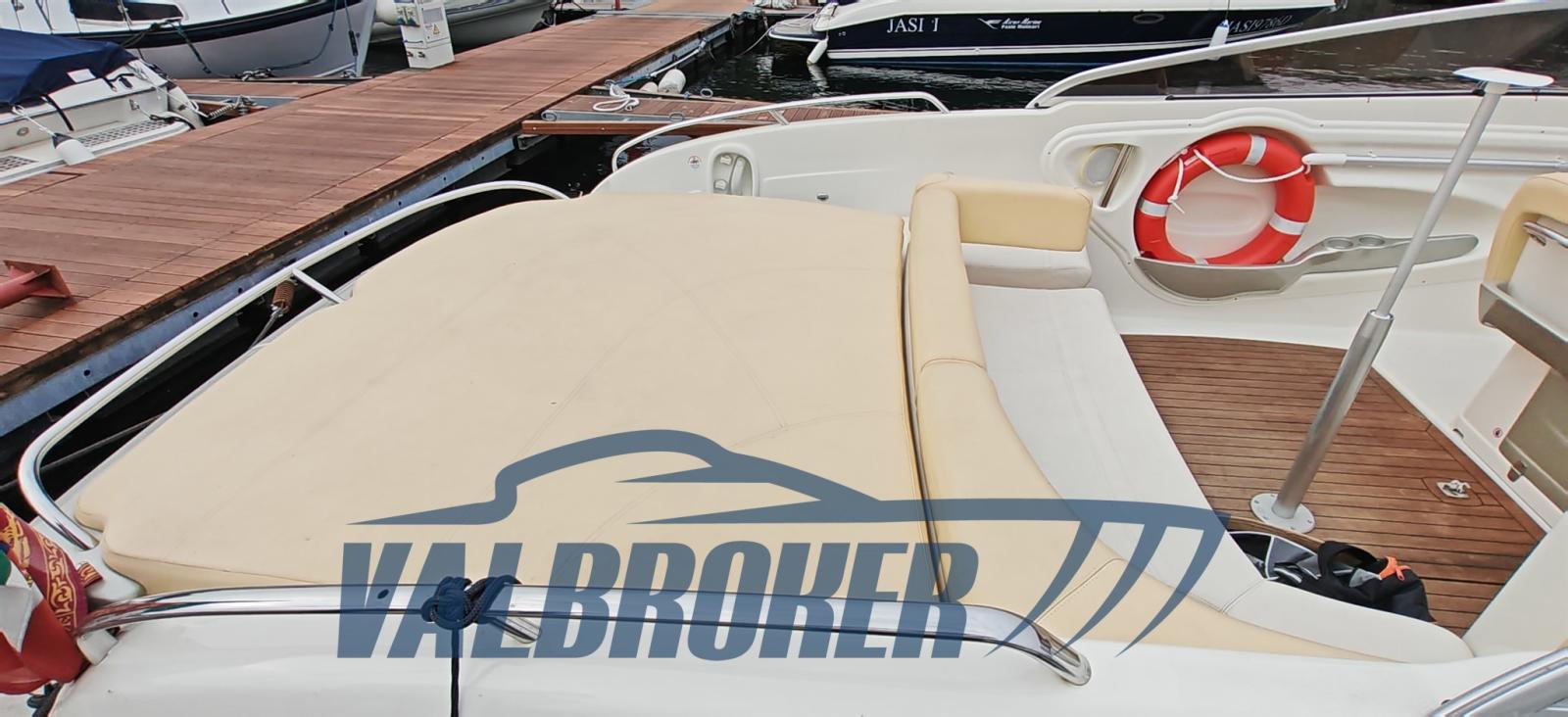 Apertura Vano Motore Elettrica, Autoclave, 2 Batterie, Doccia esterna (Caldo/freddo), Flap idraulici, Gancio Traino per Sci Nautico, Lavandino nel Pozzetto, Luci di cortesia, Luci subacquee, Piattaforma (Teak), Salpa Ancore Elettrico, Scaletta da bagno, Tavolo pozzetto.