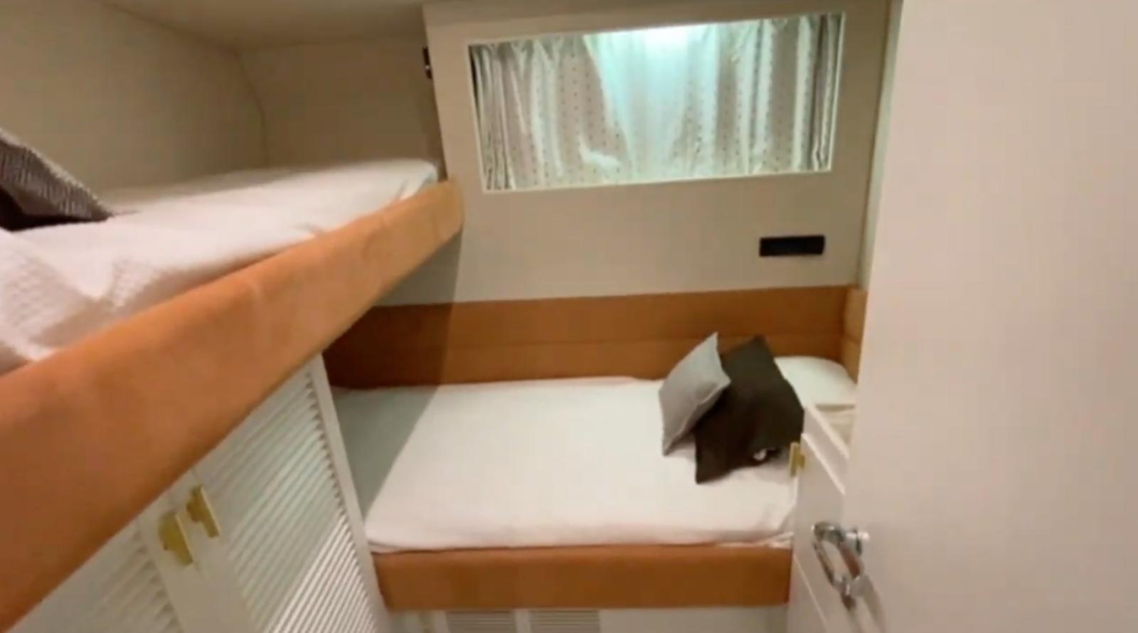 Cabina armatoriale con letto matrimoniale e bagno - cabina ospiti con due letti incrociati - cabina ospiti con due letti incrociati - bagno ospiti.