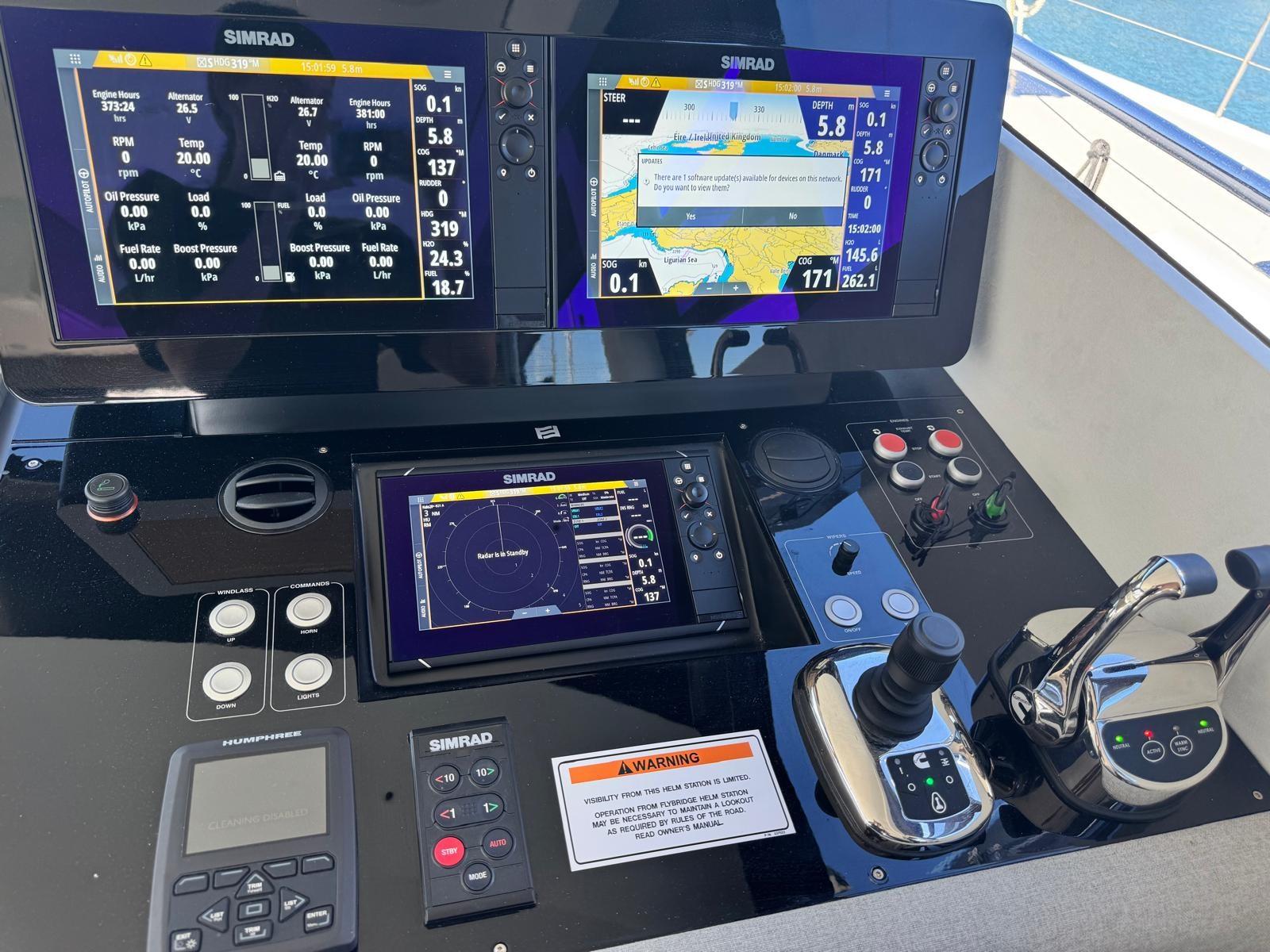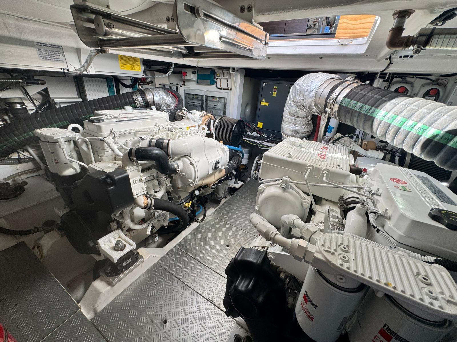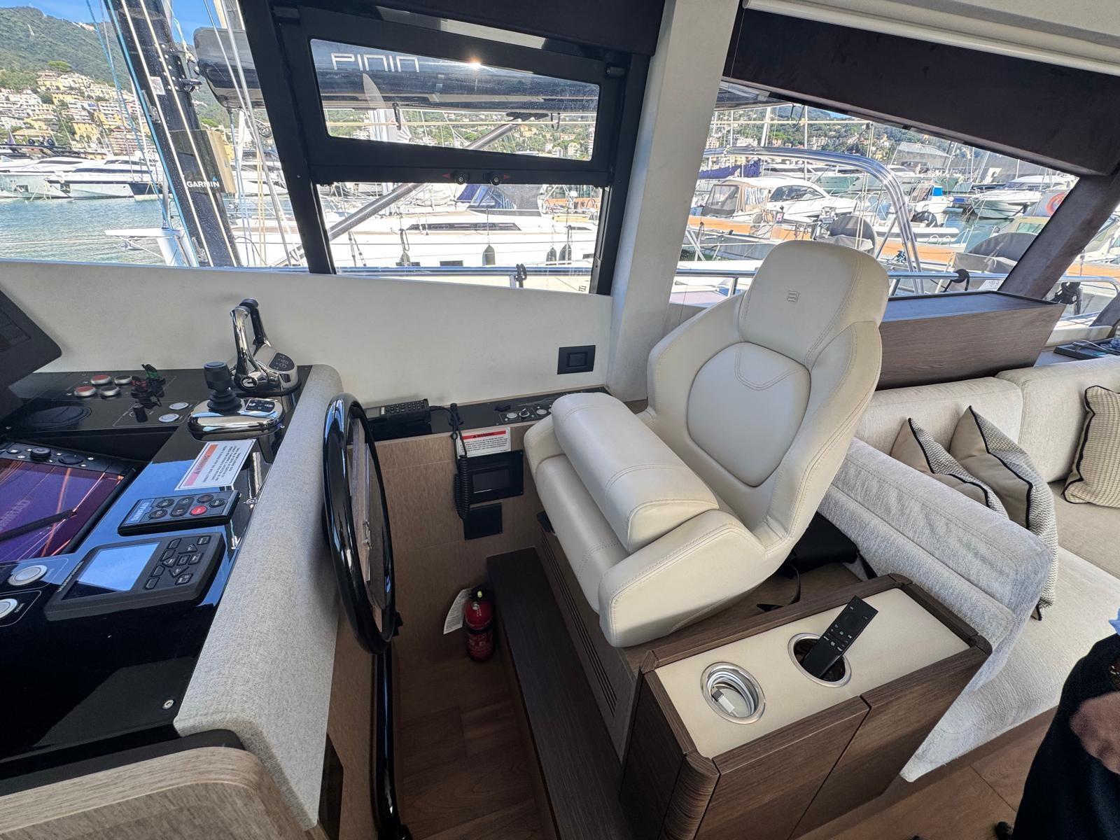 Allarme fumo/gas, Allarme sentina, Ancora (30 kg), Autoclave, Cavo corrente di banchina, Doppia timoneria, Lavandino nel Pozzetto, Luci di cortesia, Passerella, Piattaforma (Con discesa a mare), 4 Pompa di sentina automatica, 4 Pompa di sentina elettrica, Porta ingresso, Pozzetto Teak, Presa 220V banchina, Salpa Ancore Elettrico, Scaletta da bagno, Selle per Tender, Tavolo pozzetto (Telescopico), Tavolo Salone Abbattibile, Tender, Tientibene con cancelletti, Tromba, 2 Winch Elettrico (Poppa dx e sx).