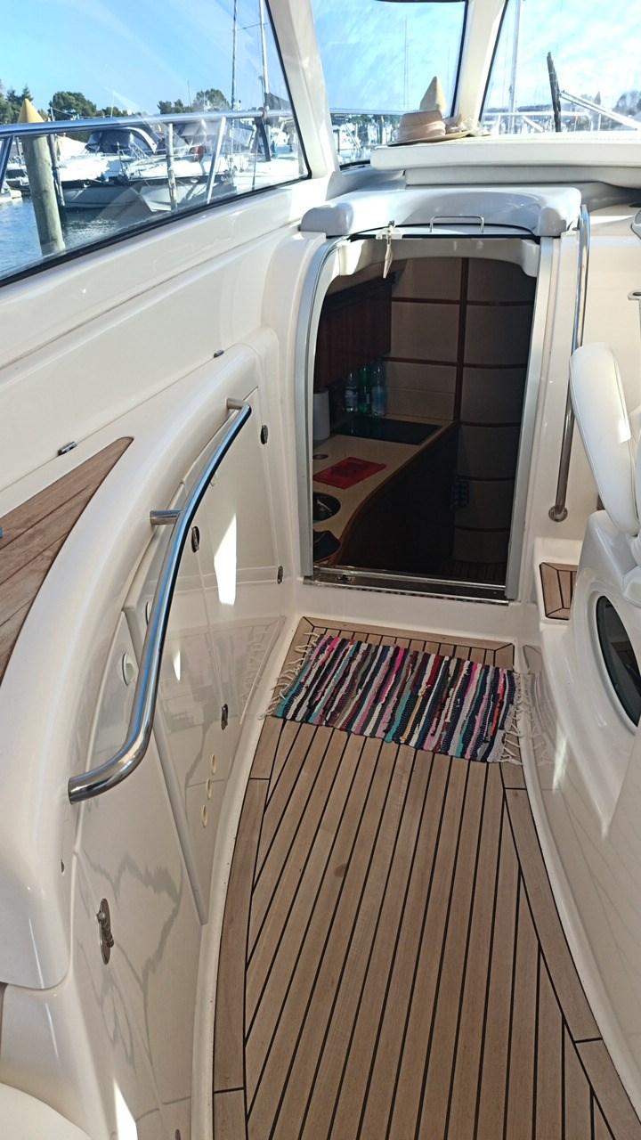 Angolo barra, Antenna radar, Comando motori elettronico, Computer di bordo, Contametri catena, Cronometro, Display, 2 Ecoscandaglio, 2 GPS (Raymarine), Pilota automatico (Raymarine), Sedile Copilota.