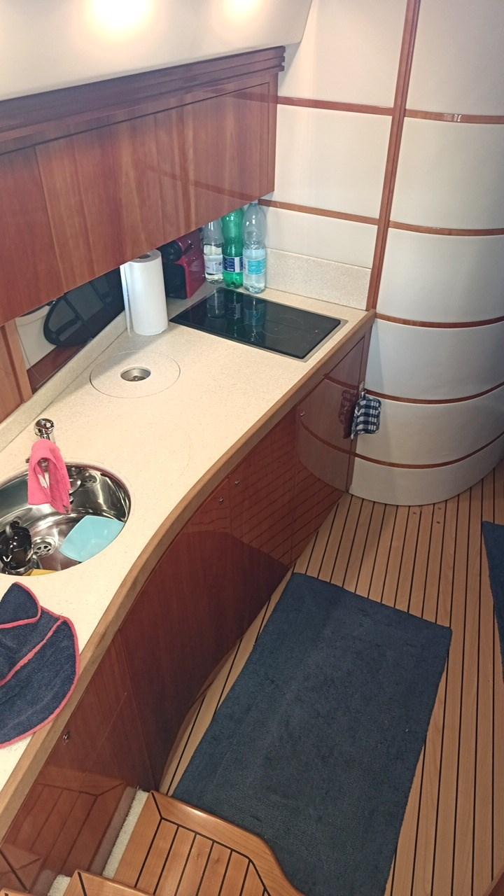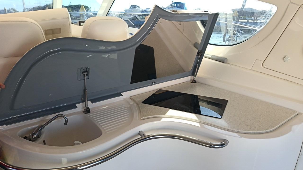 Acqua Calda, BBQ/ Grill, Boiler, Clima reversibile, Impianto acque nere, Indicatore del serbatoio del carburante, Indicatore del Serbatoio dell’Acqua, Indicatore della pressione dell’olio nel motore, Indicatore della temperatura del motore, Prese interne 12v, Prese interne 220v, Serbatoio Acque Nere, 2 WC marino elettrico.