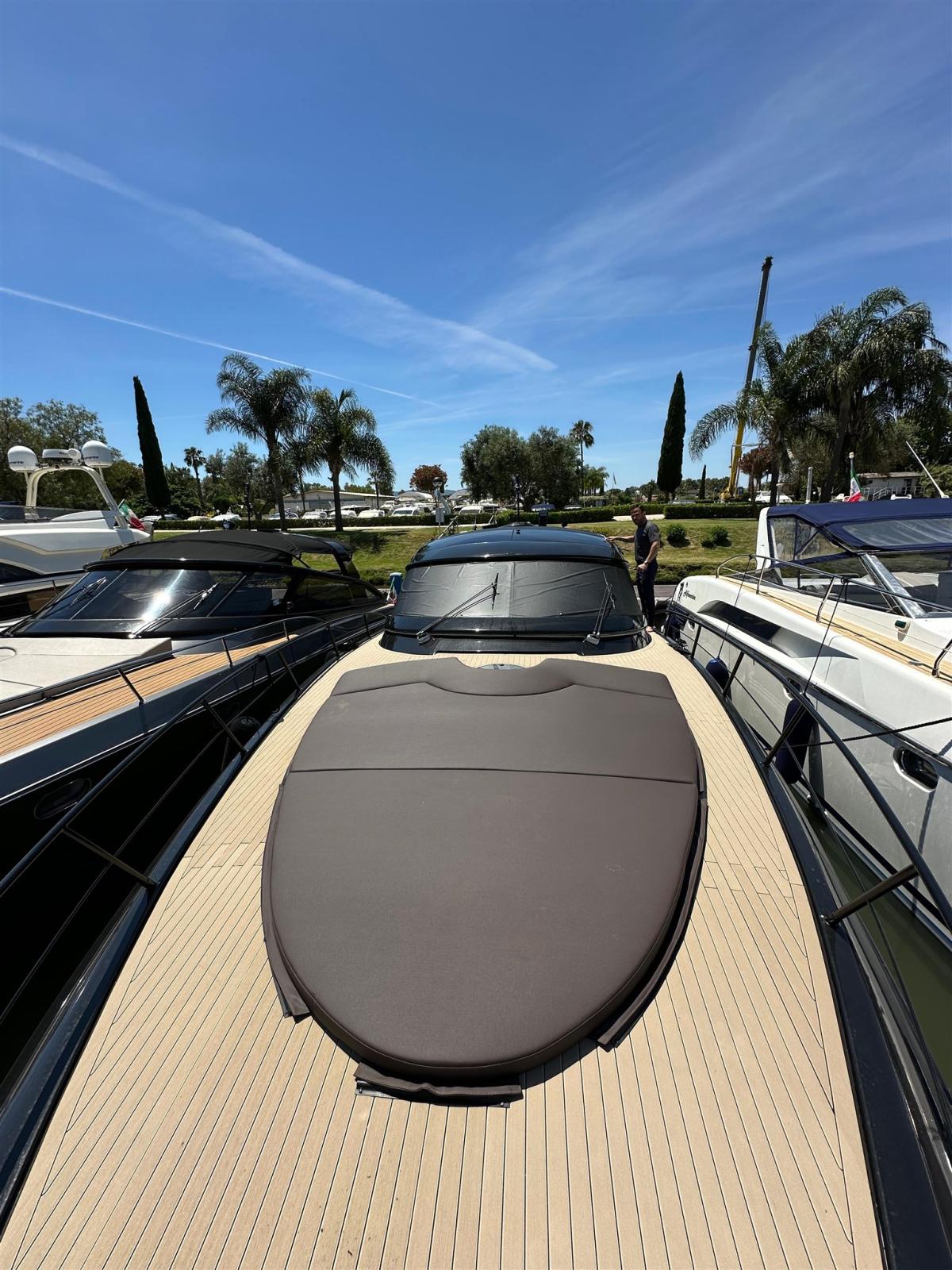 Allarme motore, Allarme sentina, Alternatore, Apertura Vano Motore Elettrica, Autoclave, Camminamenti laterali in teak, Colorazione speciale, Doccia esterna, Faro orientabile, Flap idraulici, Hard top, Impianto antincendio, Indicatori Flaps, Lavaggio catena, Luci di cortesia, Luci subacquee, Parabordi, Passerella, Piattaforma, Pompa di sentina automatica, Pompa di sentina manuale, Pompa per Acqua di Mare, Pozzetto Teak, Presa 220V banchina, Presa acqua banchina, Rollbar, Salpa Ancore Elettrico, Scaletta da bagno, Selle per Tender, Sistema Depurazione acque nere, Tavolo pozzetto, Tavolo Salone Abbattibile, Tromba, Winch, Winch tonneggio di poppa.
