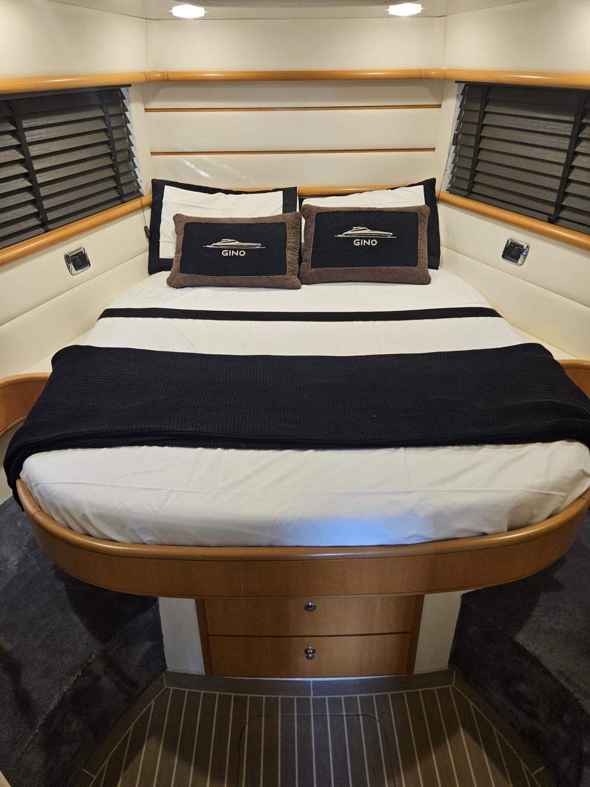 Acqua Calda, BBQ/ Grill, Boiler, Clima reversibile, Collegamento internet satellitare, Dimmer per Luci, Impianto acque nere, Indicatore del serbatoio del carburante, Indicatore del Serbatoio dell’Acqua, Indicatore della pressione dell’olio nel motore, Indicatore della temperatura del motore, Inverter (1,6 KW), Pavimento interno in legno, Prese interne 12v, Prese interne 220v, Serbatoio Acque Nere, Telecamera, 2 WC marino elettrico.