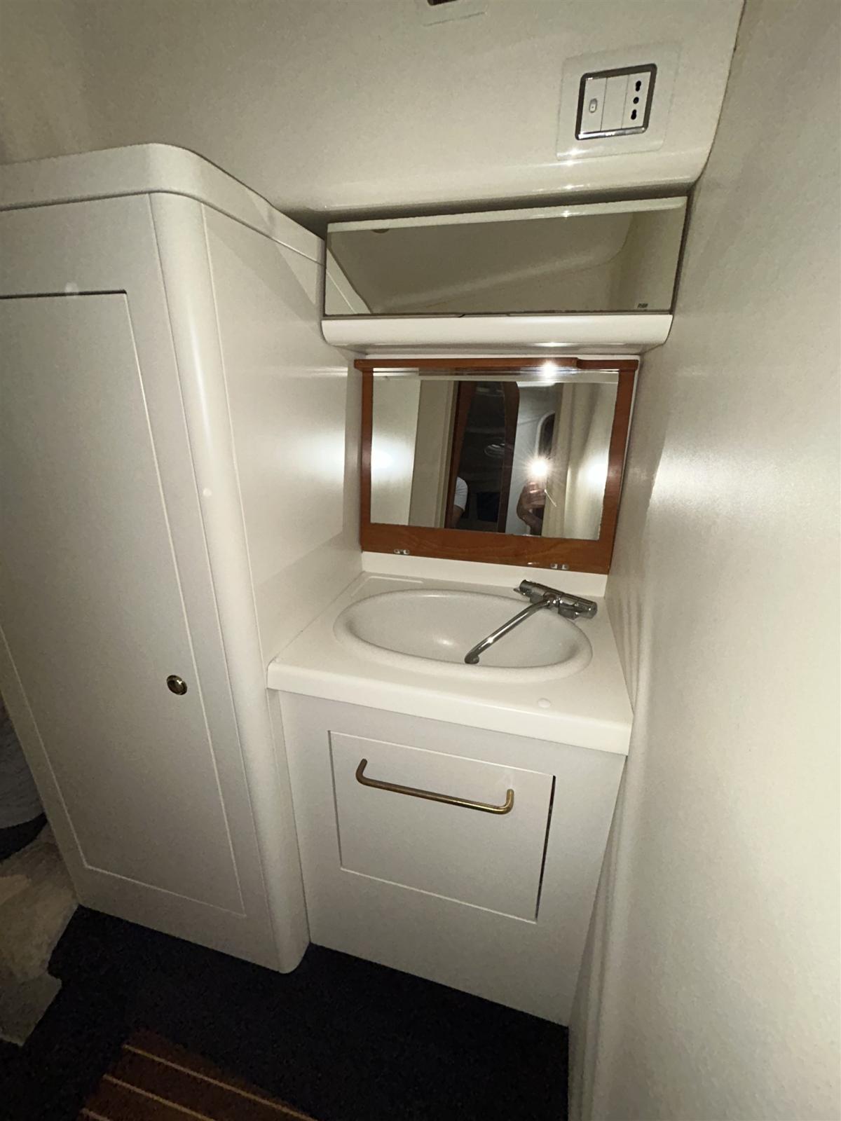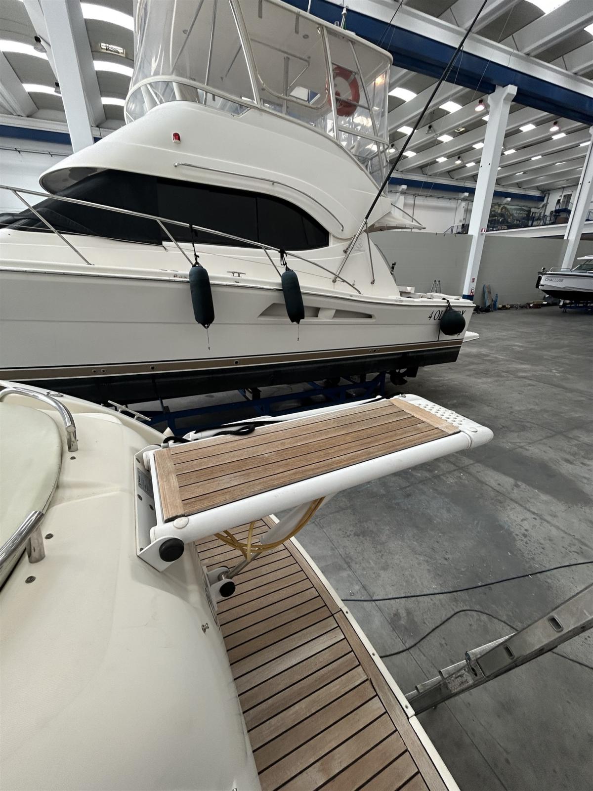 Allarme motore, Apertura Vano Motore Elettrica, Autoclave, 3 Batterie (da 180Hp ognuna), Bocche di Lupa, Caricabatterie (da 60Hp), Colorazione speciale (bianca e blu), Doccia esterna, Flap elettrici (Bennet autotab control), Garage per tender, Impianto antincendio, Indicatori Flaps, Lavandino nel Pozzetto, Luci di cortesia, Luci subacquee, Passerella (Besenzoni), Piattaforma, Pompa di sentina automatica, Porta laterale, Presa 220V banchina, Rollbar, Salpa Ancore Elettrico, Scaletta da bagno, Tavolo pozzetto (in teak), Tavolo Salone Abbattibile (interno, trasformabile in letto matrimoniale a V), Tientibene con cancelletti, 2 Tromba (Inox), Winch (Quick + contacatena a prua).