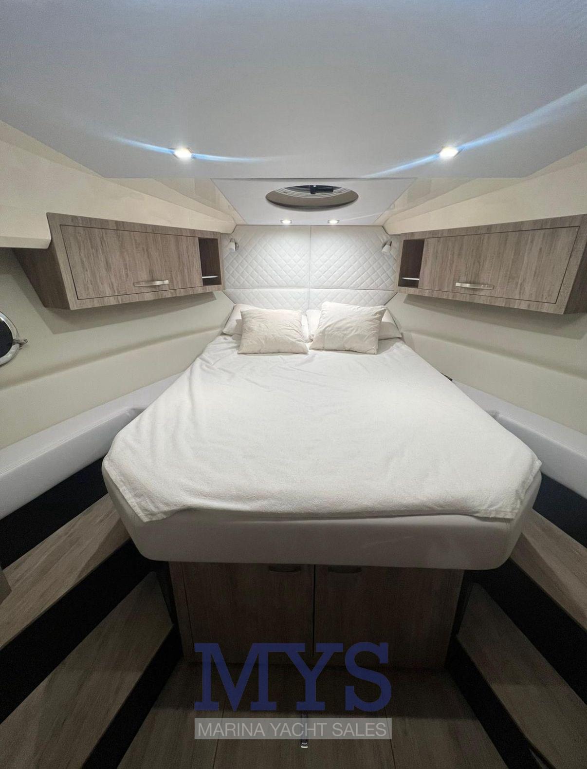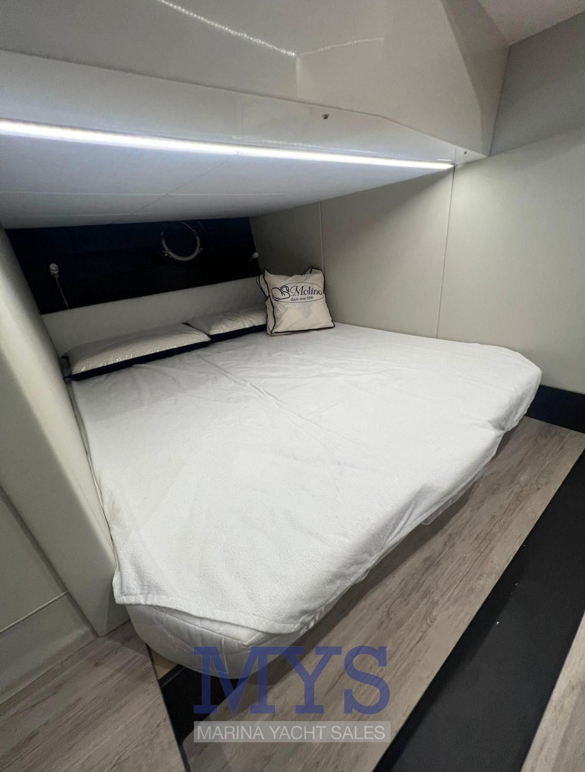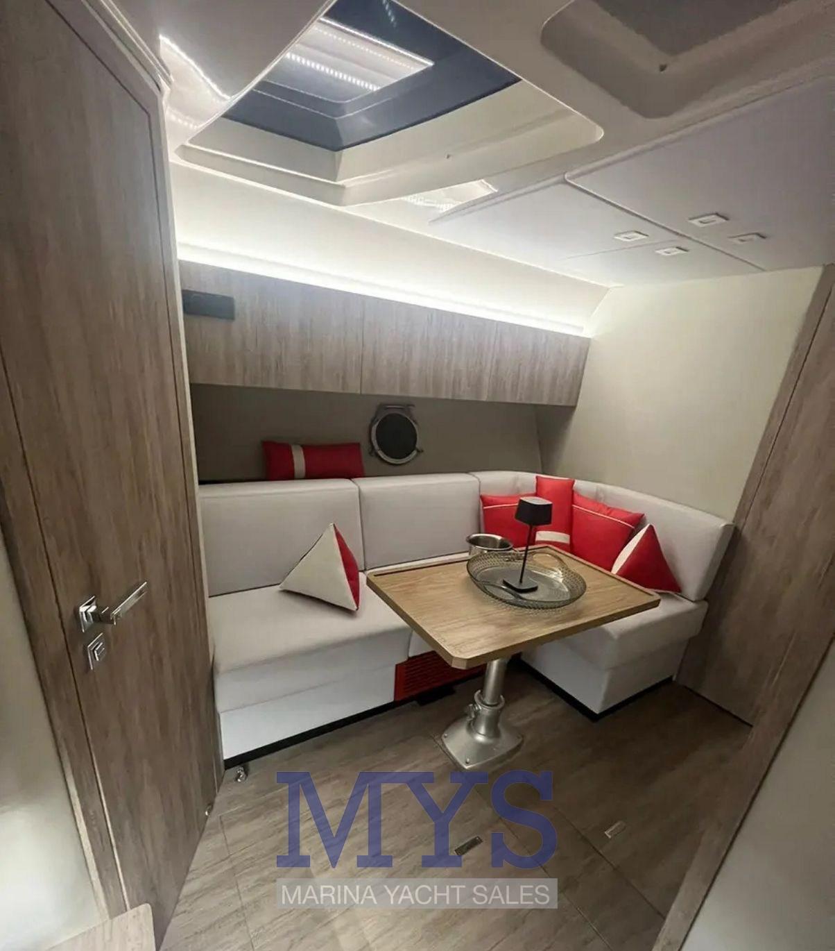 Allarme motore, Allarme sentina, Apertura Vano Motore Elettrica, Autoclave, Cavo corrente di banchina, Colorazione speciale (Scafo grigio), Doccia esterna, Flap elettrici (Automatici), Hard top, Lavandino nel Pozzetto, Passerella, Piattaforma, Pompa di sentina automatica, Pompa di sentina manuale, Porta ingresso, Pozzetto Teak, Presa 220V banchina, Salpa Ancore Elettrico, Scaletta da bagno, Tavolo pozzetto, Tavolo Salone Abbattibile, Tromba.