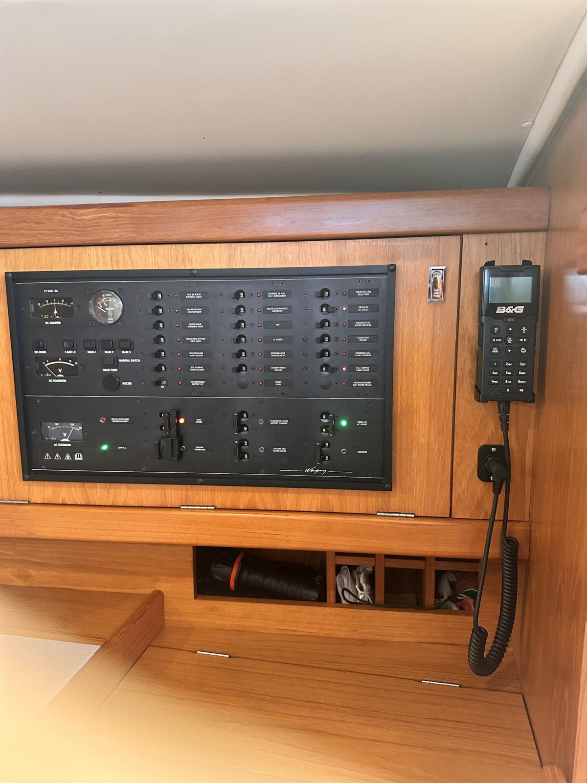 Angolo barra, Ecoscandaglio (Autohelm ST 60), Pilota automatico (Autohelm 7000), Plotter con antenna GPS (Nuovo 2025 Axiom 9 Rayamrine), Radio VHF (B&G doppia postazione AIS attivo nuovo 2025), Stazione vento (Autohelm ST 60).