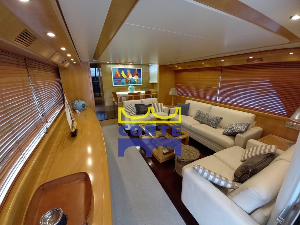 Allarme motore, Allarme sentina, Autoclave, Camminamenti laterali in teak, Doccia esterna, Flap idraulici, Gruette per tender su fly, Impianto antincendio, Luci di cortesia, Passerella (idraulica a scomparsa), Piattaforma (di poppa in teak), Pompa di sentina automatica, Porta ingresso, Porta laterale, Pozzetto Teak, Presa 220V banchina, Presa acqua banchina, Salpa Ancore Elettrico, Scaletta da bagno, Tavolo pozzetto, Tromba, 2 Winch tonneggio di poppa, Winch tonneggio di prua.
