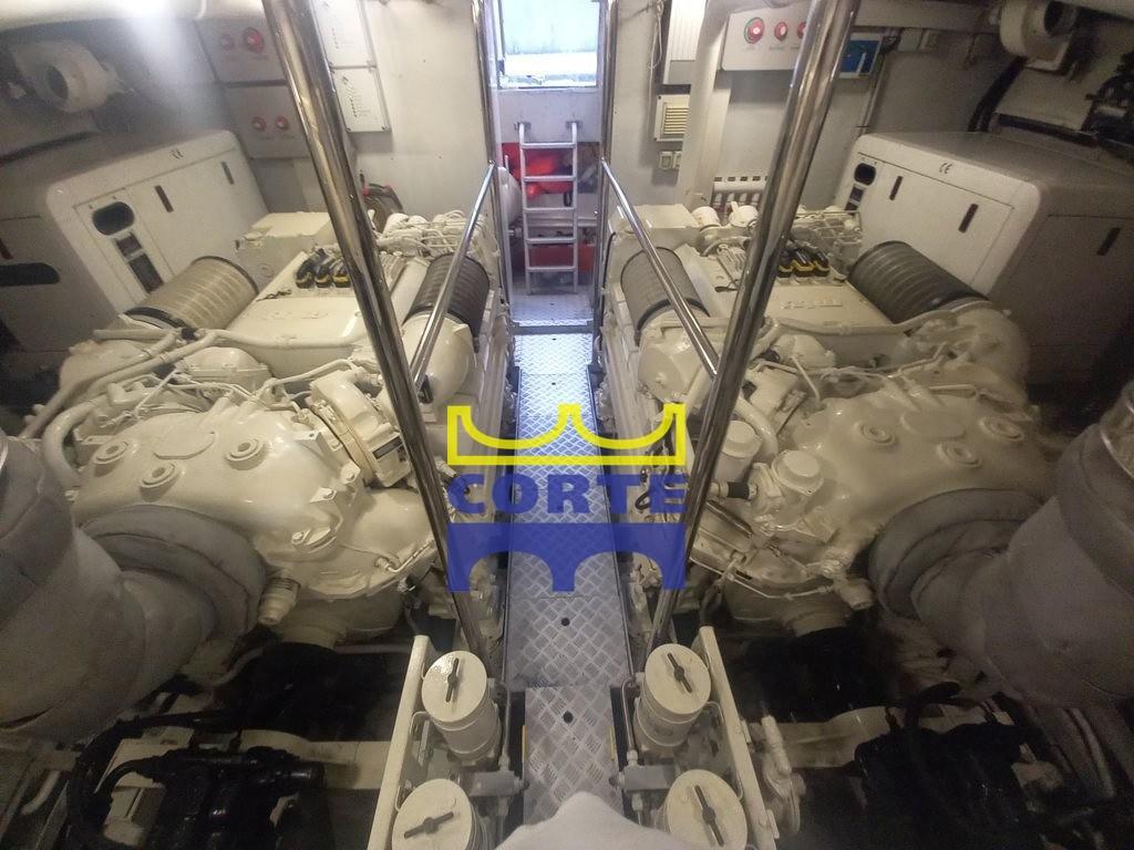 Allarme motore, Allarme sentina, Asse di rispetto, Autoclave, Camminamenti laterali in teak, Doccia esterna, Doppia timoneria, Flap idraulici, Gruette per tender su fly, Impianto antincendio, Luci di cortesia, Passerella (elettroidraulica a scomparsa), Piattaforma (di poppa), Pompa di sentina automatica, Porta ingresso, Porta laterale, Pozzetto Teak, Presa 220V banchina, Presa acqua banchina, Ripetitore strumentazione, Salpa Ancore Elettrico, Scaletta da bagno, Tavolo pozzetto, Tromba, 2 Winch tonneggio di poppa, Winch tonneggio di prua.