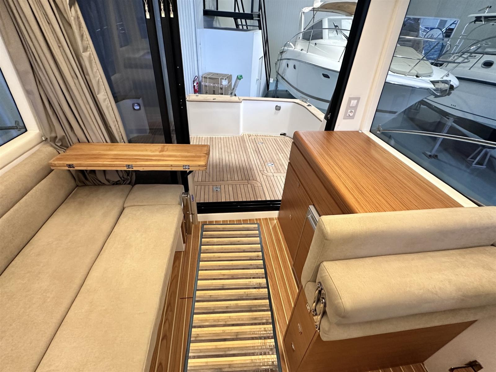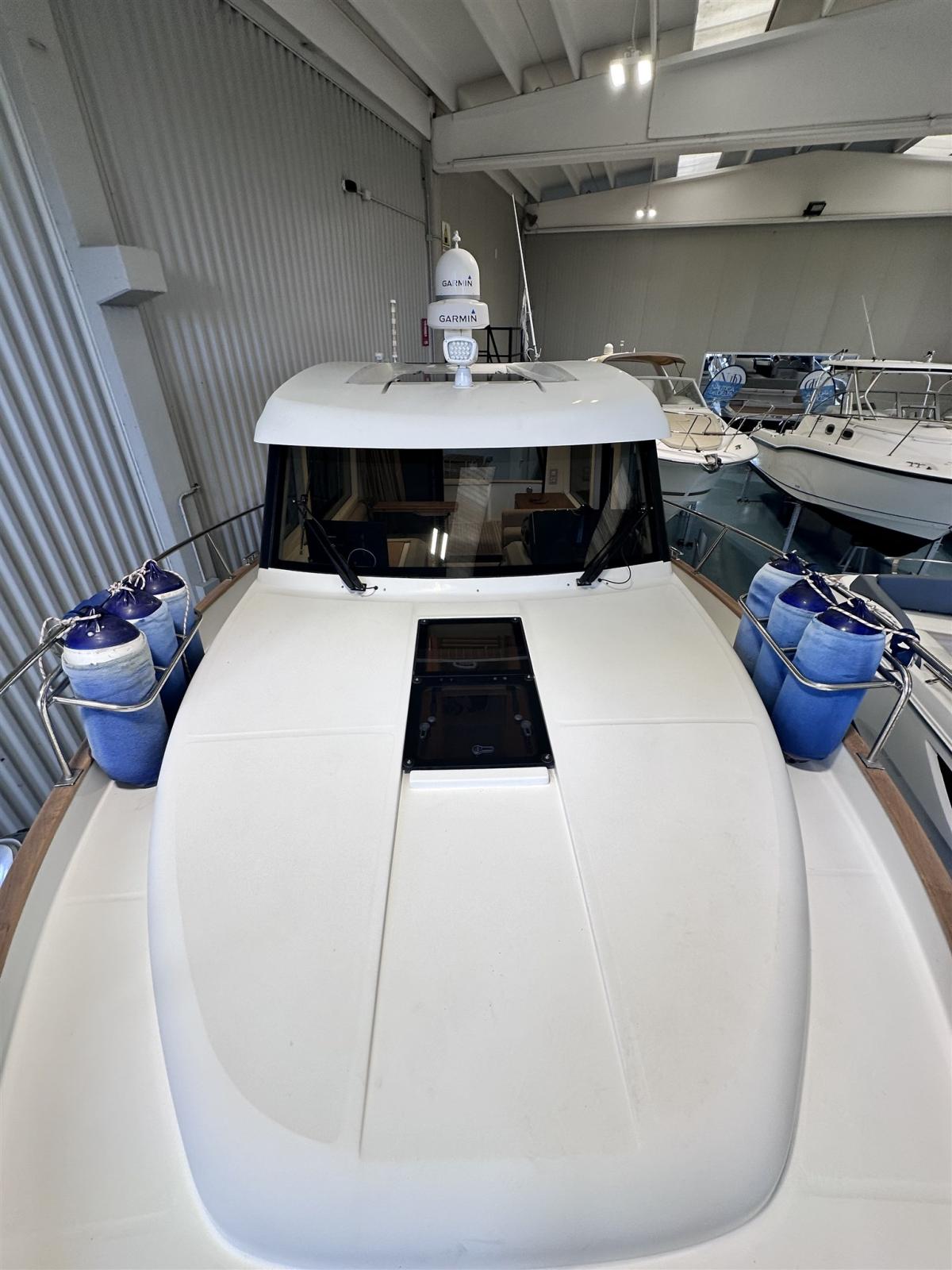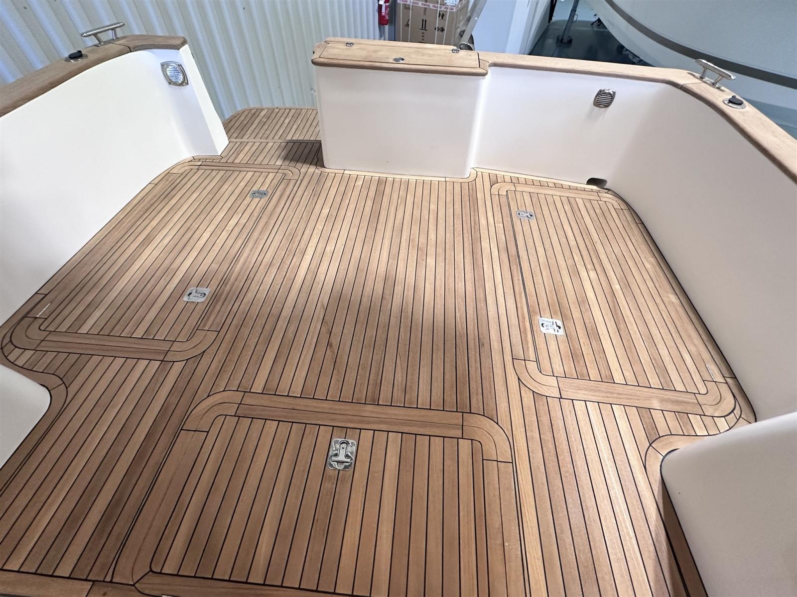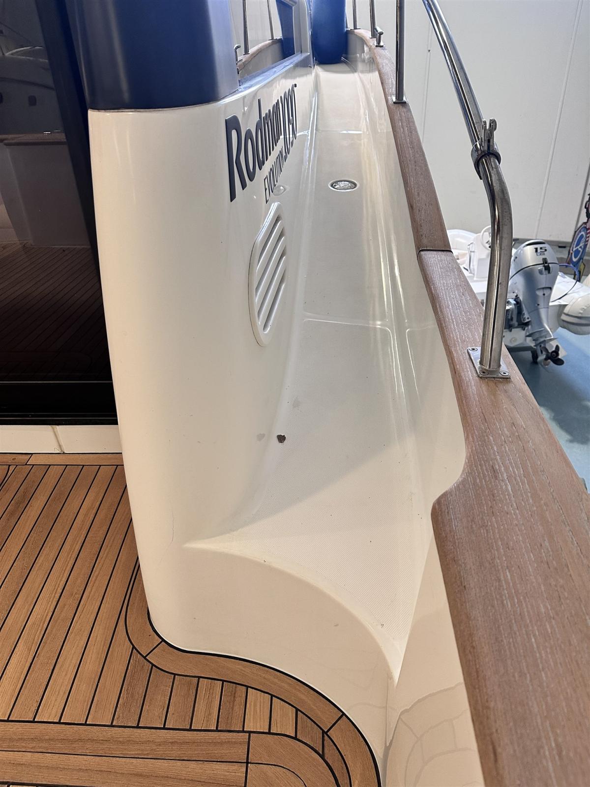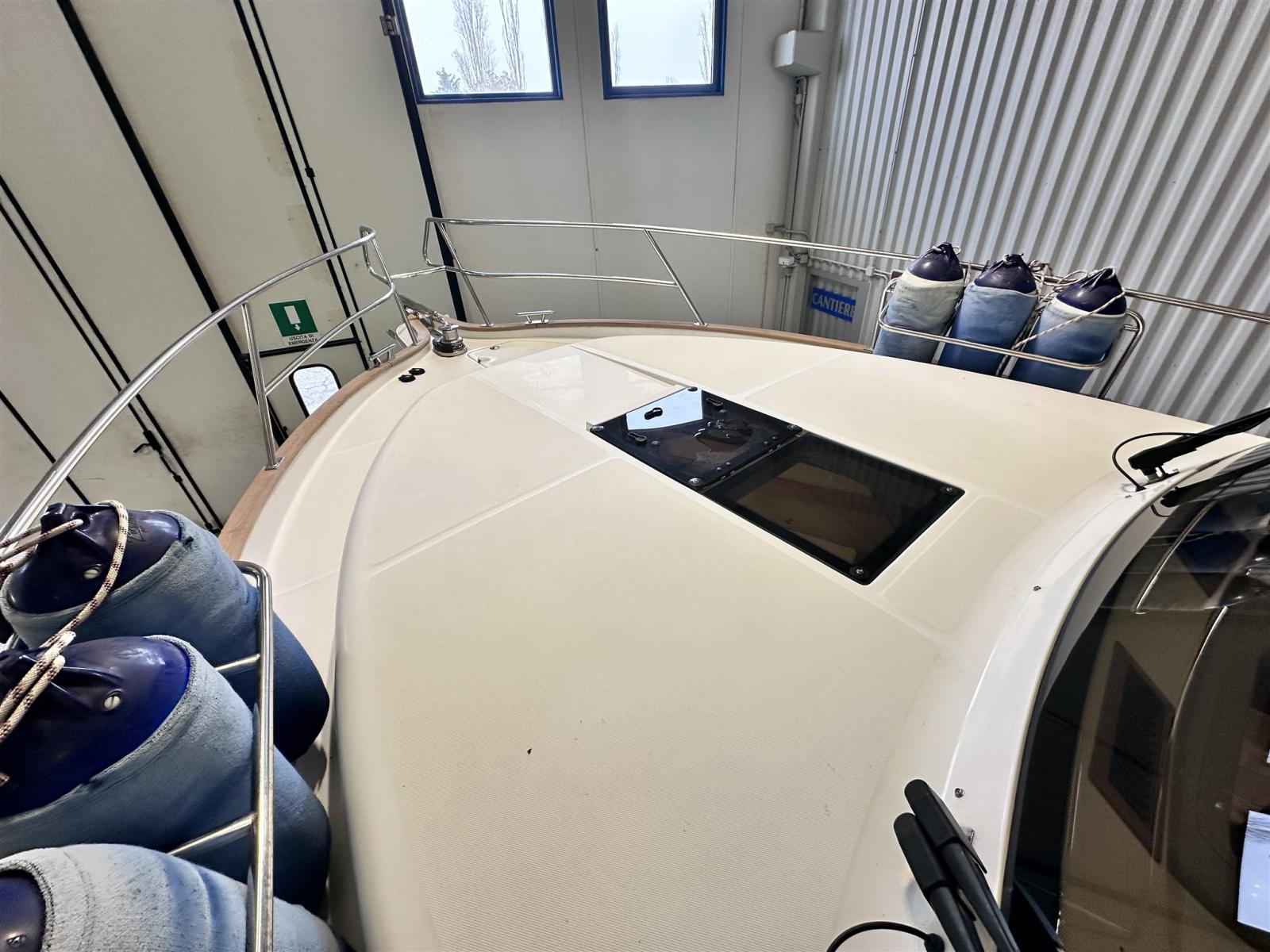 Allarme motore, Autoclave, Colorazione speciale (blu), Doccia esterna, Faro orientabile, Flap elettrici, Hard top, Impianto antincendio, Indicatori Flaps, Piattaforma, Pompa di sentina automatica, Pompa di sentina manuale, Porta laterale, Pozzetto Teak, Presa 220V banchina, Raddrizzatore, Salpa Ancore Elettrico, Scaletta da bagno, Tromba.
