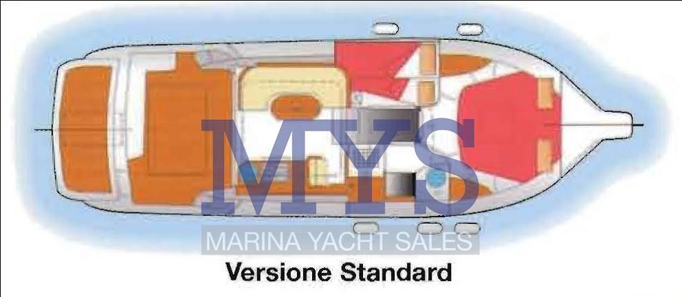 Allarme motore, Allarme sentina, Doccia esterna, Hard top, Lavandino nel Pozzetto, Luci di cortesia, Passerella, Porta ingresso, Pozzetto Teak, Presa 220V banchina, Salpa Ancore Elettrico, Scaletta da bagno, Tavolo Salone Abbattibile, Tromba.