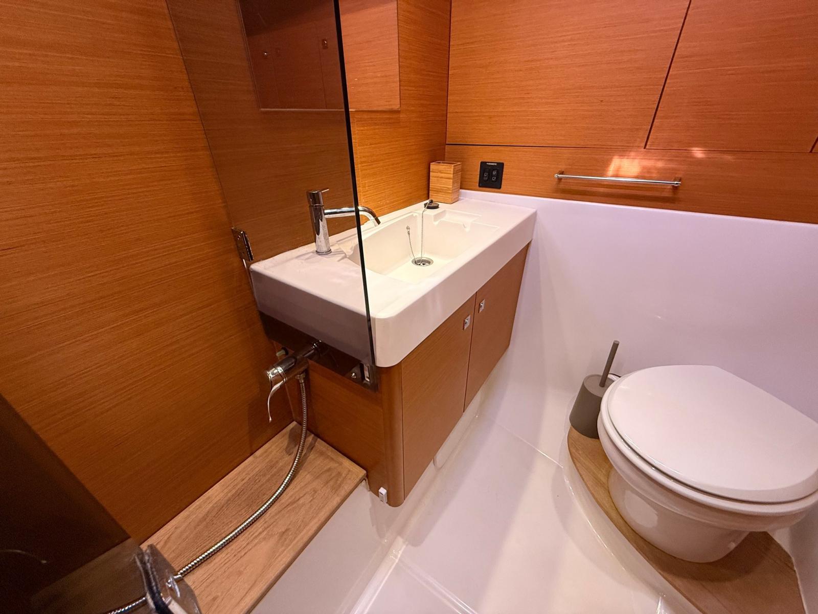 Boiler, Clima reversibile, Dissalatore (SCHENKER 60), Indicatore del serbatoio del carburante, Indicatore del Serbatoio dell’Acqua, Pavimento interno in legno, Prese interne 12v, Prese interne 220v, Serbatoio Acque Nere, 2 WC marino elettrico.