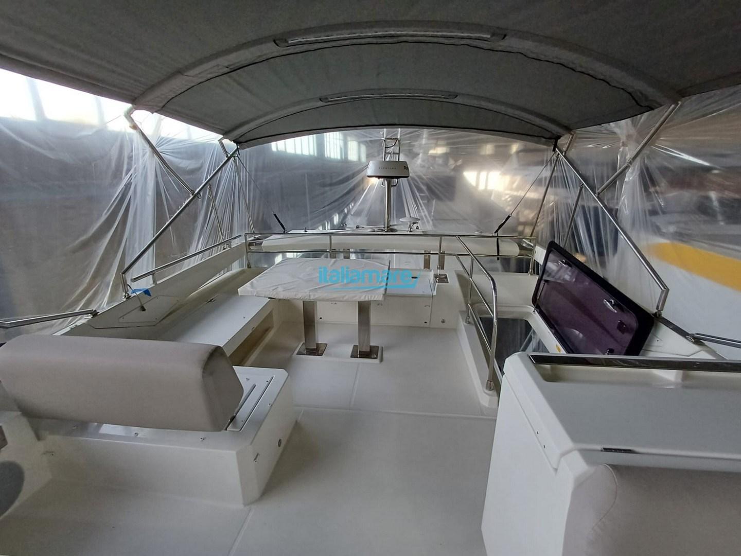Imbarcazione Flybridge con prendisole a poppa dalle dimensioni generose.